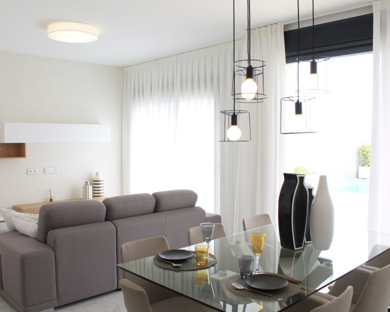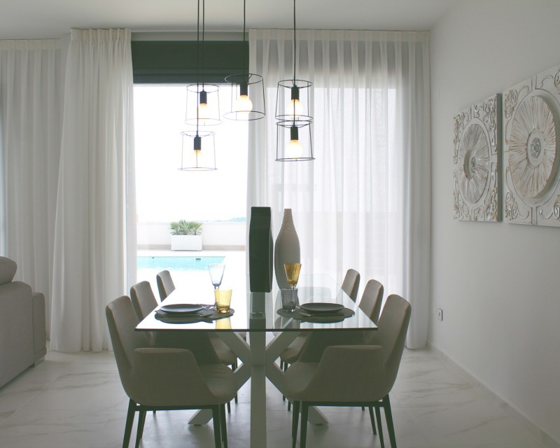 Esta moderna villa ocupa un hermoso entorno en una área con impresionantes vistas panorámicas. La zona más verde, bonita y tranquila de San Miguel de Salinas... A tan solo siete kilómetros de las playas de Orihuela, con vistas a las salinas, rodeada de campos de golf y centros comerciales. Esta nueva promoción se compone de villas independientes con piscina privada y amplias viviendas adosadas en planta baja con zonas ajardinadas y piscinas comunitarias... Las villas están acabadas con los mejores materiales y tienen un aspecto lujoso. Los interiores son modernos y tienen abundante luz... La piscina privada de 8x4m está incluida en el precio... La ubicación es perfecta para los amantes del golf ya que el complejo se encuentra a tan solo 5 minutos de los cuatro campos de 18 hoyos, incluido el galardonado Las Colinas Golf and Country Club. Se encuentra a tan solo 35 min del aeropuerto, 15 min de las playas de la Dehesa de Campoamor, y 9 min del hospital. El complejo residencial está cerca de todos los servicios, como bares, restaurantes, cafeterías y supermercados, ya solo 10 minutos de un gran centro comercial La Zenia Boulevard y lugares de ocio.