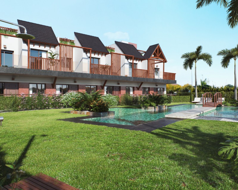 Este magnifico residencial cuenta con 25 bungalows, basados en la mezcla de un método de construcción de primerísima calidad y la estética del diseño tailandés. Una combinación relajante de materiales naturales y una decoración extensa. Con la practicidad de tener todos los servicios a tan solo 300 metros del casco urbano de Pilar de la Horadada y a menos de 3 kilómetros de la playa, en el corazón de la Costa Blanca.