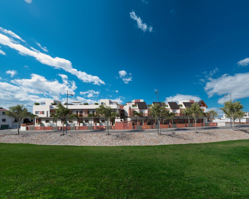 Viviendas con 2/3 dormitorios, 2/3 baños y con amplios exteriores privados, plaza de aparcamiento para cada una de las viviendas y piscina comuntaria.