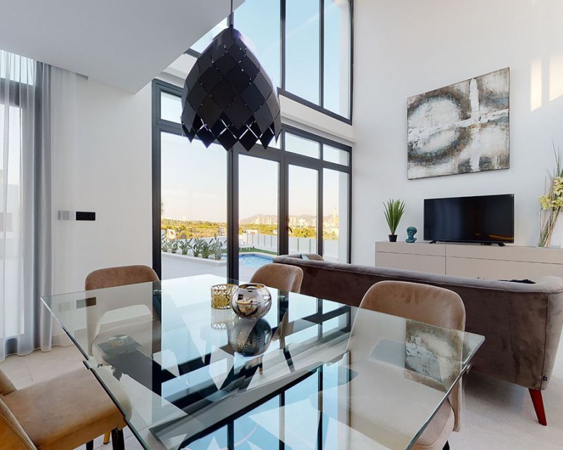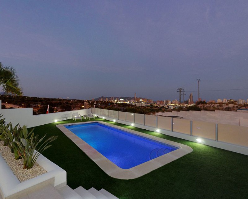 Les presentamos un precioso chalet en Finestrat con una superficie de 210,23m2 y parcela 523,21m2, 3 dormitorios y 4 baños, terraza 9,75m2, solarium 59,20m2. El garaje está incluido en el precio, el sótano es opcional y la piscina es de 32m2. Su gran salón con plan de cocina abierta con grandes ventanales y amplios solárium, ofrecerá vistas panorámicas al mar Mediterráneo que te harán experimentar el lujo que todos desearían. Se encuentra a tan solo 30 minutos de la ciudad de Alicante con el aeropuerto internacional de El Altet y su estación de tren la cual cuenta con un tren de alta velocidad, te permitirá disfrutar cómodamente del maravilloso clima de la Costa Blanca. Sol, playa, montaña, golf, buenos restaurantes, parques temáticos, centros comerciales, espectáculos. Este fantástico complejo turístico está construido sobre una parcela de 18.300m² de los cuales casi 3.000m² están dedicados al relax con zonas verdes y piscinas.