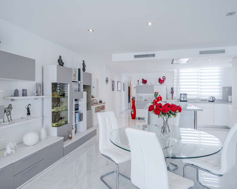En un complejo de apartamentos que se encuentra justo a la Playa del Arenal junto a todos los servicios, restaurantes y otras comodidades necesarias se encuentra este piso súper moderno que está excepcionalmente situado para servir vistas panorámicas del Mediterráneo y al mismo tiempo estar a distancia para que usted pueda disfrutar de las encantadoras brisas tropicales. El apartamento está hecho en un diseño minimalista que es entrañable y magnífico con una elegancia y encanto discretos. Se distribuye en una acogedora sala de estar con parte de la pared acristalada y puede abrirse a una hermosa terraza soleada con vistas al mar. El espacio luminoso y aireado se mezcla con un espacioso comedor que luego da paso a una cocina gourmet abierta que está totalmente equipada. Con 4 dormitorios y 3 baños adicionales, usted y sus seres queridos disfrutarán de la comodidad, el confort y el estilo que sólo se puede experimentar en un hermoso espacio vital como este. Esta propiedad está equipada con instalación de aire acondicionado, incluso la estructura general del espacio está incrustada con grandes armarios empotrados y un vestidor , estantes salientes y plataformas niveladas, entre otras sorpresas, donde puedes guardar tus chucherías mientras añades carácter a la casa a tu manera. ¿Y quién no querría tener un hogar que se identifique con su individualidad? El complejo también cuenta con amplio aparcamiento cerca del hermosa avenida histórica de Calpe, junto a los restaurantes, bancos, hoteles de lujo y playa as bonita de Costa Blanca Siéntase libre de contactarnos para una visita al lugar.