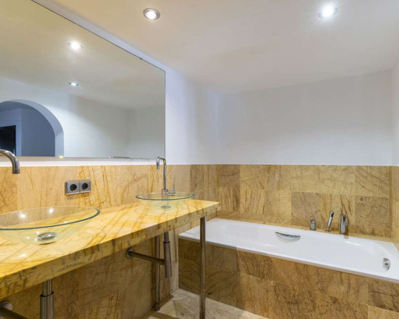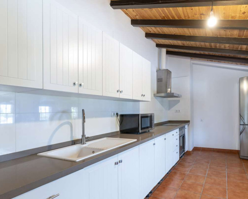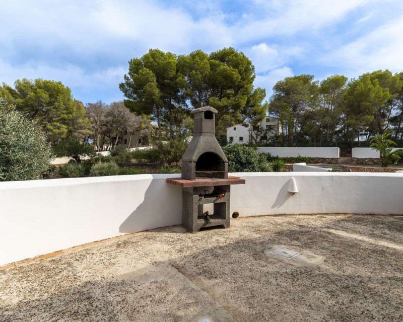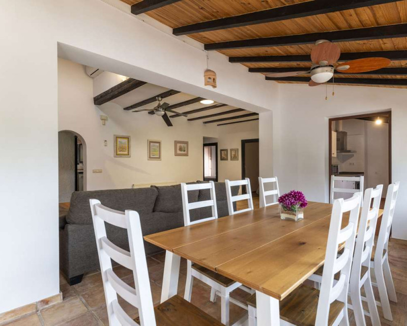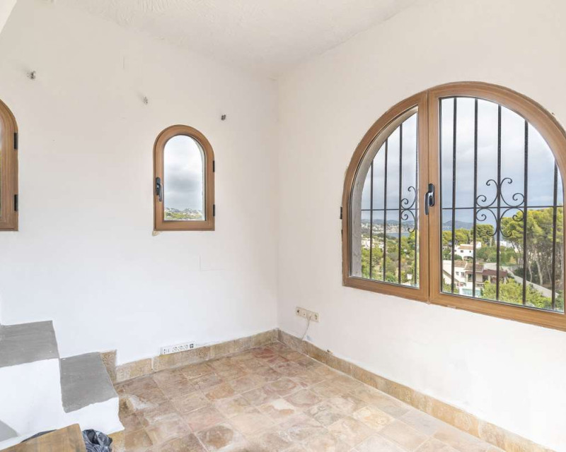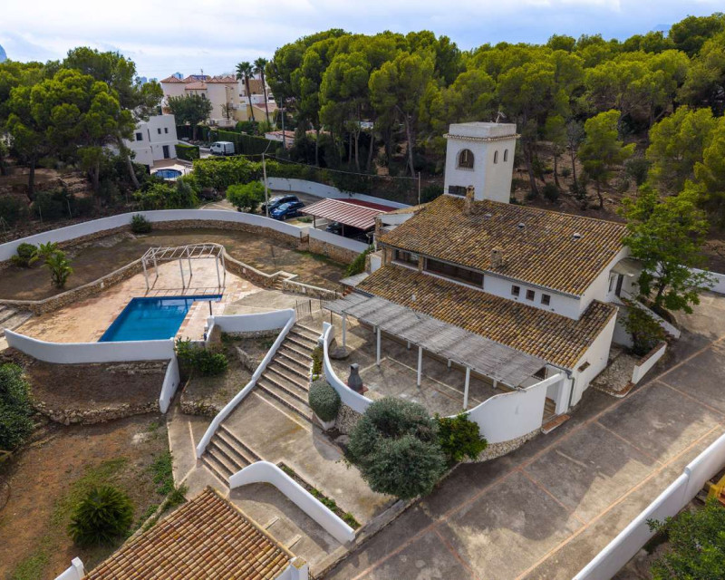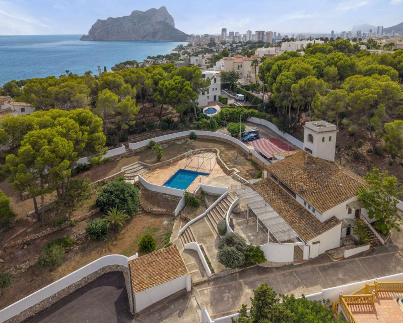 [Villa mediterránea con vistas al mar y total privacidad en La Fustera][BR][BR] Casa principal[BR] La residencia principal le da la bienvenida con un luminoso comedor rodeado de amplios ventanales que ofrecen hermosas vistas a los árboles, las montañas y el mar. El salón cuenta con una acogedora chimenea, ideal para las cálidas tardes de invierno, y se conecta con una cocina totalmente equipada y dos cómodos dormitorios con baño compartido.[BR][BR] Un sistema de calefacción de gas garantiza comodidad durante todo el año.[BR] Una cocina auxiliar, ideal para catering o como lavadero, se conecta con el pasillo que conduce a la suite principal, que incluye acceso directo a la terraza y baño en suite.[BR][BR] Planta alta[BR] Una escalera conduce a la parte superior de la casa, donde le esperan un baño y una luminosa sala multiusos. Inundado de luz natural y con vistas panorámicas al mar, la vegetación circundante y el icónico Peñón de Ifach, este espacio es perfecto para usar como oficina en casa o estudio de arte. [BR][BR] Planta baja[BR] La planta baja incluye dos apartamentos independientes, ideales para invitados o oportunidades de alquiler. [BR][BR] El primer apartamento cuenta con un amplio recibidor, un dormitorio, una suite principal con baño en suite y una cocina con entrada independiente. [BR][BR] El segundo apartamento incluye un dormitorio y un baño, ambos con acceso directo a la terraza, la zona de barbacoa y la piscina. [BR][BR] Vida al aire libre[BR] El exterior está diseñado para la relajación y el entretenimiento, rodeado de un maduro paisaje mediterráneo. Las amplias terrazas y la zona de piscina privada ofrecen el entorno perfecto para reuniones familiares, cenas al aire libre o simplemente para disfrutar del entorno tranquilo y la brisa marina.