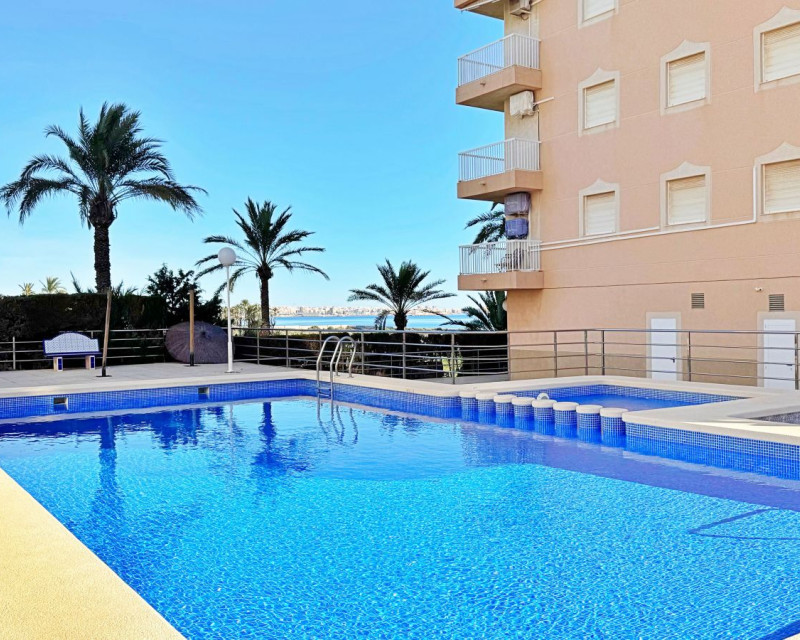 Apartamento en venta en Rocío del Mar, Torrevieja, situado en una exclusiva zona residencial junto a Punta Prima, a tan solo 200 metros del mar. Esta vivienda de 43 m² se encuentra dentro de una urbanización privada con piscina comunitaria y ofrece un ambiente tranquilo y familiar durante todo el año. El apartamento está en excelente estado de conservación y destaca por su orientación sur, que garantiza una luminosidad excepcional durante todo el día. Dispone de un acogedor salón comedor con salida a una terraza acristalada ideal para disfrutar del clima mediterráneo, cocina completamente equipada, un dormitorio doble con armario empotrado y un baño completo con bañera y ventilación natural. La terraza ofrece agradables vistas laterales al mar y espacio suficiente para colocar una mesa y varias sillas. Entre sus características adicionales se incluyen aire acondicionado en el salón, toldos instalados, suelos de plaqueta, edificio con ascensor y acceso adaptado. La vivienda se entrega lista para entrar a vivir. La urbanización cuenta con una amplia piscina comunitaria rodeada de zonas de descanso, en un entorno seguro y cuidado. Su ubicación es inmejorable, a pocos pasos del mar y muy cerca de todos los servicios como supermercados, restaurantes, transporte público y zonas de ocio. Este apartamento en Rocío del Mar es una excelente oportunidad de compra tanto para residencia habitual como para disfrutarlo como vivienda vacacional o como inversión con alta rentabilidad en una de las zonas más demandadas de la costa de Torrevieja.