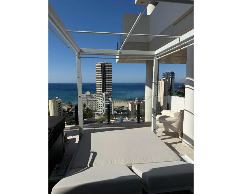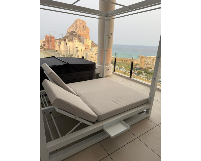 Silver Tower – Exclusividad, diseño y vistas incomparables en el corazón de CalpeSilver Tower es una promoción de obra nueva única en Calpe, un icono de arquitectura contemporánea que redefine el concepto de lujo en la Costa Blanca. Situada en pleno centro de la localidad y a tan solo 150 metros de la Playa del Arenal, esta extraordinaria torre combina ubicación privilegiada, diseño innovador y calidades excepcionales.El edificio consta de 15 plantas y solo 33 viviendas, lo que garantiza privacidad y exclusividad. Ofrece apartamentos de 2 y 3 dormitorios, bajos con jardín, viviendas en altura y espectaculares áticos dúplex con piscina privada y solárium. Todas las propiedades incluyen plaza de garaje subterránea y trastero, y disfrutan de amplias terrazas pensadas para vivir el Mediterráneo todo el año.La promoción dispone de cuidadas zonas verdes, amplios espacios de descanso y una elegante piscina comunitaria, creando un entorno residencial sofisticado y tranquilo.Una vivienda verdaderamente excepcional – Planta 13Presentamos, sin lugar a dudas, el piso más bonito actualmente en el mercado de Calpe.Ubicado en la planta 13 (vivienda 13B), este exclusivo apartamento ofrece impresionantes vistas panorámicas al Peñón de Ifach, uno de los símbolos naturales más emblemáticos del Mediterráneo.La vivienda cuenta con:2 dormitorios y 2 bañosVestidor independienteSuperficie total de 115 m²Espectacular terraza con jacuzzi privado para 4 personas, totalmente nuevo y sin estrenarGran sunbed exclusivo para disfrutar del sol y las vistasDos plazas de garaje incluidas en el precioTrastero privadoEl apartamento ha sido completamente personalizado y redecorado con un nivel de detalle excepcional, muy por encima del estándar de obra nueva. Cada elemento ha sido cuidadosamente seleccionado para crear un ambiente elegante, sofisticado y atemporal.Entre las mejoras y acabados de alta gama destacan:Decoración y mobiliario de EichholtzSistema de televisión y audio Bang & OlufsenSanitarios y grifería de lujo Devon & DevonCama Hypnos en el dormitorio principalInversión superior a 25.000 € en mejoras exclusivasEl resultado es una vivienda única, lista para entrar a vivir, pensada para los compradores más exigentes.Calpe: lujo, clima y calidad de vidaCalpe es uno de los destinos más deseados de la Costa Blanca, famoso por sus playas de aguas cristalinas, su gastronomía, su puerto deportivo y su ambiente internacional. Disfruta de un clima privilegiado con más de 300 días de sol al año, temperaturas suaves en invierno y veranos agradables, ideal tanto para residencia habitual como para segunda vivienda o inversión premium.Vivir en Calpe es disfrutar del Mediterráneo en su máxima expresión, con todos los servicios, restaurantes, boutiques y playas a pocos pasos, y con la majestuosidad del Peñón de Ifach como telón de fondo.