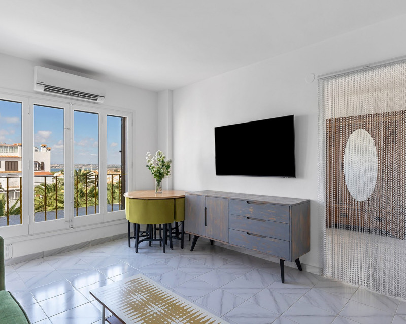 Descubre este apartamento moderno perfectamente ubicado, con 1 amplio dormitorio y un gran solárium privado con impresionantes vistas al mar – ideal para disfrutar de atardeceres, comidas al aire libre y momentos de relax bajo el sol. Ubicado a tan solo 900 metros de las hermosas playas de arena de La Mata, esta vivienda combina comodidad, tranquilidad y una excelente ubicación. Características de la vivienda: Luminoso salón con zona de comedor Cocina abierta totalmente equipada Baño moderno Dormitorio amplio con mucha luz natural La residencia dispone de gran piscina comunitaria y bonitos jardines. Ubicación excelente: Cerca de bares, restaurantes y supermercados A 35 minutos del Aeropuerto de Alicante A 55 minutos del Aeropuerto de Murcia Se vende totalmente amueblado y listo para entrar a vivir – ideal como vivienda vacacional, residencia de invierno o inversión segura cerca del mar. ¡Contáctanos hoy mismo para concertar una visita!