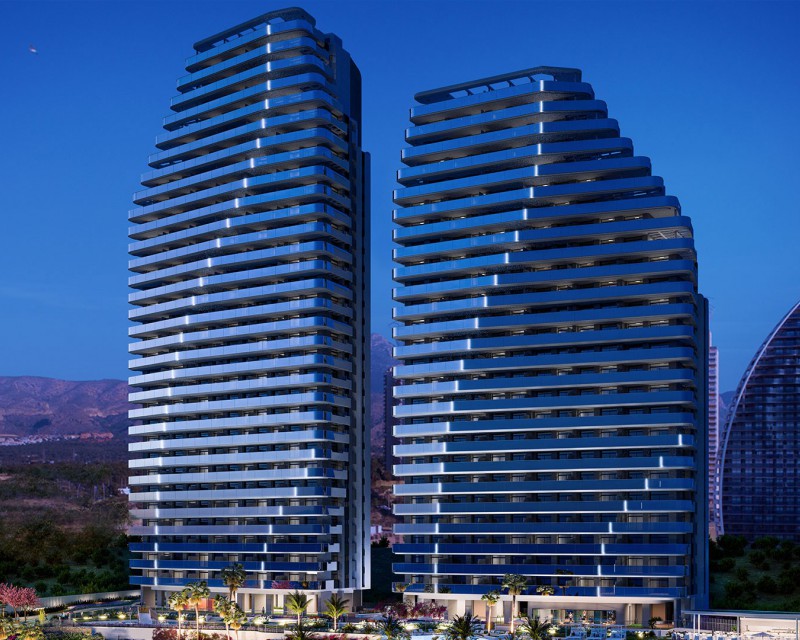 Te 2 wspaniałe wieże docierają do Playa Poniente, uzupełniając wspaniałą panoramę Benidormu. Projekt mieszkaniowy obejmujący łącznie 277 nieruchomości z 1, 2, 3 i 4 sypialniami. Jego bezkonkurencyjna lokalizacja i wysokość nieruchomości pozwalają cieszyć się wspaniałymi widokami na morze. Budząc się każdego ranka z niesamowitymi widokami i uczuciem, jakbyś unosił się na morzu. Ponadto Sunset Cliffs ma ponad 12 000 metrów kwadratowych powierzchni wspólnych, rozmieszczonych na różnych wysokościach, zapewniających widok na morze ze wszystkich stron. Jest podgrzewany basen, basen dla dorosłych, basen dla dzieci z placem zabaw, panoramiczna siłownia, jacuzzi, strefa relaksu zintegrowana z basenem, klub dla dzieci, sala gier wideo i różne boiska sportowe. Wyjątkowe osiedle zaprojektowane tak, aby cieszyć się życiem w basenie Morza Śródziemnego bez ograniczeń.