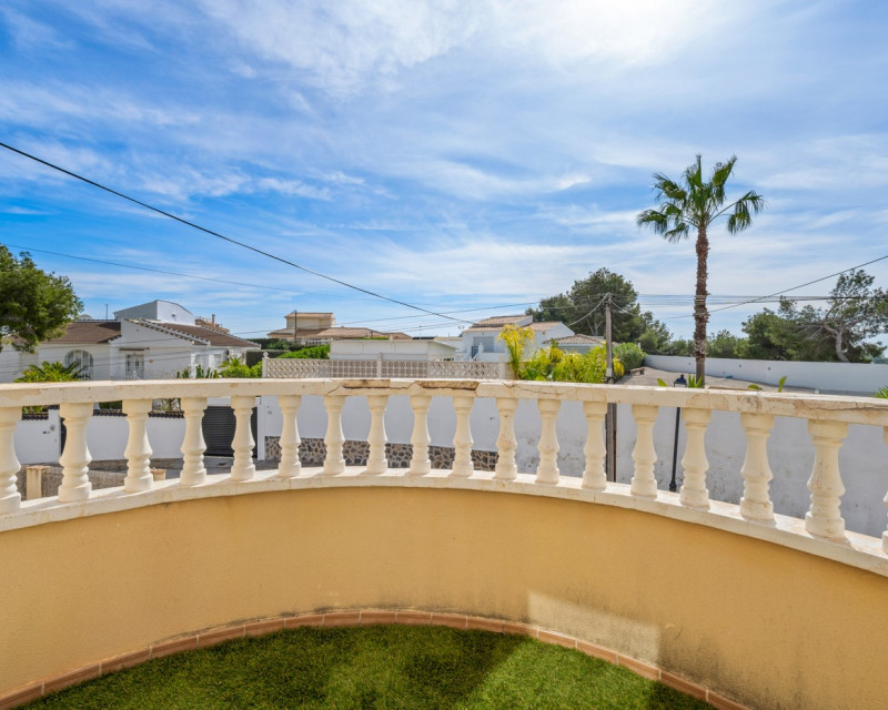 Ta ekskluzywna, wolnostojąca willa od pierwszej chwili zachwyca klimatem i autentycznością. Zaokrąglona fasada, ozdobne balustrady oraz eleganckie łuki nadają nieruchomości typowo śródziemnomorski charakter, który od razu przyciąga uwagę. Ciepły kolor elewacji w połączeniu z detalami z naturalnego kamienia tworzy wyjątkowo urokliwy wygląd. Już przy wejściu wita Państwa przytulny, zadaszony taras – idealne miejsce do korzystania z życia na świeżym powietrzu przez cały rok. Dom oferuje jasne przestrzenie mieszkalne oraz piękne okna z dekoracyjnym wykończeniem, które zapewniają przyjemne, naturalne doświetlenie wnętrz. Różne tarasy, w tym przestronny taras słoneczny na piętrze, oferują o każdej porze dnia doskonałe miejsce w słońcu lub w cieniu. Łatwy w utrzymaniu ogród ze sztuczną trawą tworzy zieloną, zadbaną atmosferę bez konieczności dużej pielęgnacji, dzięki czemu można w pełni się zrelaksować i cieszyć hiszpańskim klimatem. Dostępne jacuzzi sprawia, że życie na zewnątrz staje się jeszcze bardziej komfortowe i przyjemne. W pełni ogrodzona przestrzeń zewnętrzna gwarantuje spokój i prywatność, dzięki czemu nieruchomość idealnie nadaje się zarówno jako miejsce stałego zamieszkania, dom wakacyjny, jak i atrakcyjna inwestycja. Budynek jest w dobrym stanie technicznym, jednak miejscami wymaga odświeżenia i nowoczesnej aktualizacji, aby w pełni wykorzystać jego potencjał. Kilka prac modernizacyjnych pozwoli przekształcić tę pełną charakteru willę w prawdziwą perłę pod słońcem. To wyjątkowa okazja, aby stać się właścicielem urokliwej willi z charakterem – dostępnej na wyłączność w naszej ofercie.