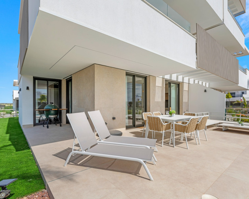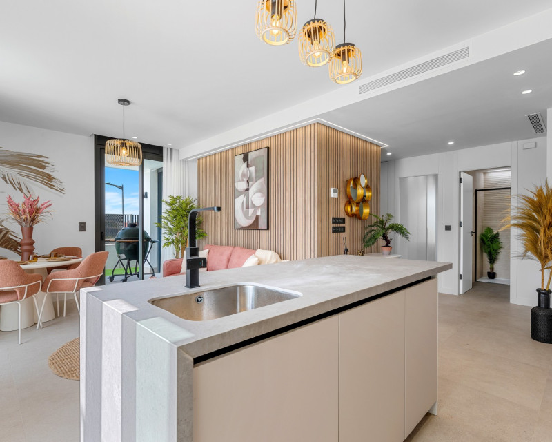 Szukasz wyjątkowej nieruchomości, w której komfort, luksus i wakacyjna atmosfera łączą się w idealnej harmonii? To ekskluzywne mieszkanie na parterze jest dokładnie tym, czego potrzebujesz. Ta całkowicie nowa, nigdy wcześniej niezamieszkana nieruchomość jest częścią prestiżowego i starannie zaprojektowanego kompleksu mieszkaniowego, zbudowanego wokół zapierającej dech w piersiach turkusowej laguny – rzadkiego i bajkowego miejsca, które trudno znaleźć w Hiszpanii. To wyjątkowa okazja, aby stać się właścicielem nowoczesnego mieszkania gotowego do zamieszkania, położonego w jednej z najbardziej pożądanych lokalizacji na Costa Blanca. Przemyślany układ pomieszczeń obejmuje trzy przestronne sypialnie, dwie w pełni wyposażone łazienki, jasny salon z nowoczesną kuchnią oraz duży prywatny taras z własnym basenem. Wszystko zostało zaprojektowane z myślą o maksymalnym komforcie i doskonałej harmonii między przestrzenią wewnętrzną i zewnętrzną. Wysokiej jakości wykończenia, dbałość o detale oraz zastosowanie trwałych, łatwych w utrzymaniu materiałów – takich jak sztuczna trawa na tarasie – to tylko niektóre z atutów tej nieruchomości. Kuchnia wyposażona jest w nowoczesne sprzęty AGD, a zintegrowana klimatyzacja zapewnia komfort przez cały rok. Dzięki lokalizacji na parterze masz bezpośredni dostęp do ogrodu i basenu – idealne miejsce na relaks o każdej porze dnia. Lokalizacja jest naprawdę wyjątkowa. Turkusowa laguna znajduje się zaledwie kilka kroków od mieszkania – to idealne miejsce do kąpieli, opalania się lub wypoczynku w otoczeniu natury. W okolicy znajdują się również liczne obiekty sportowe i rekreacyjne, co sprawia, że nieruchomość doskonale nadaje się zarówno do użytku prywatnego, jak i jako dochodowa inwestycja. W pobliżu znajdują się plaże, pola golfowe i tętniące życiem nadmorskie miasteczka. Niezależnie od tego, czy marzysz o domu wakacyjnym, pewnej inwestycji czy stałym miejscu zamieszkania w słońcu – to mieszkanie oferuje wszystko. Daj się oczarować tej unikalnej przestrzeni życiowej w ekskluzywnym i harmonijnym otoczeniu – miejscu, gdzie każdy dzień przypomina wakacje.
