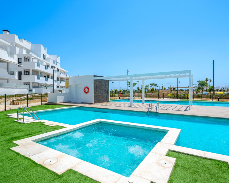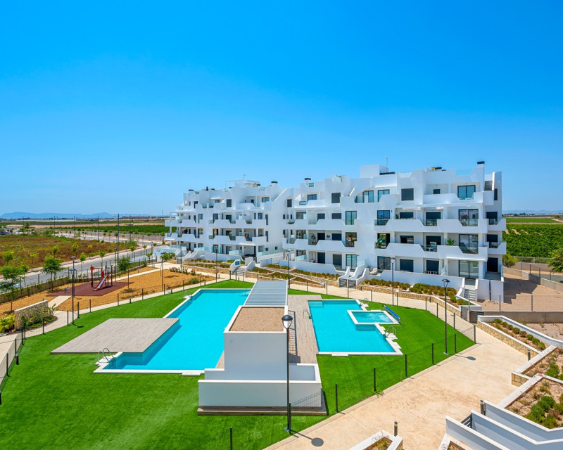 Odkryj nowoczesne mieszkanie narożne z 2 sypialniami i 2 łazienkami w prestiżowym Santa Rosalía Lake & Life Resort, ekskluzywnej i dynamicznie rozwijającej się społeczności położonej między wybrzeżem a polami golfowymi regionu Murcja. Mieszkanie, skierowane na południowy zachód, jest pełne naturalnego światła i oferuje piękny widok na kompleks i basen. Otwarta przestrzeń dzienna z nowoczesną, w pełni wyposażoną kuchnią płynnie łączy się z przestronnym prywatnym tarasem, idealnym miejscem na relaks w słońcu lub podziwianie zachodu słońca. Główna sypialnia ma własną łazienkę, a druga sypialnia sąsiaduje ze stylową łazienką dla gości. Mieszkanie zostało zbudowane z wysokiej jakości materiałów i wyposażone w klimatyzację, zapewniając komfort przez cały rok. Nieruchomość jest częścią projektu Levansur Home Five, obejmującego 60 mieszkań rozmieszczonych w 4 budynkach, z 2 wspólnymi basenami i jednym podgrzewanym basenem. W sercu resortu znajduje się zachwycające, krystalicznie czyste jezioro otoczone klubami plażowymi, ścieżkami spacerowymi, sportami wodnymi, restauracjami i strefami rekreacyjnymi. Santa Rosalía oferuje wyjątkowy styl życia, w którym natura, relaks i luksus łączą się w doskonałej harmonii. Niezależnie od tego, czy szukasz domu wakacyjnego, miejsca do zamieszkania na stałe, czy inwestycji z dużym potencjałem, to mieszkanie narożne oferuje wszystko, komfort, styl i doskonałą lokalizację w jednym z najbardziej pożądanych resortów Costa Cálida.
