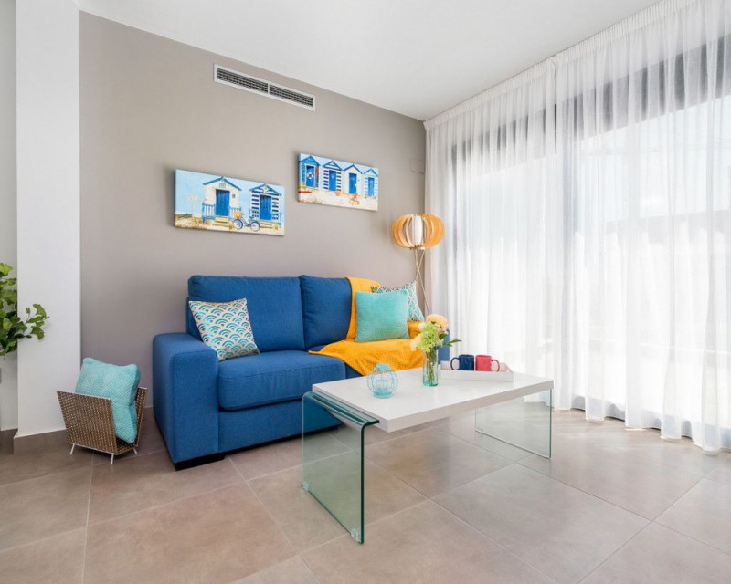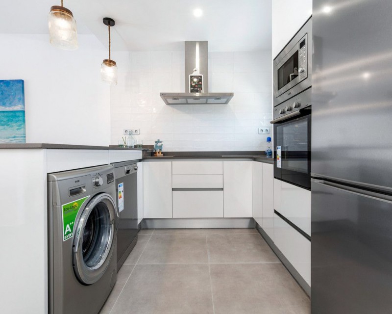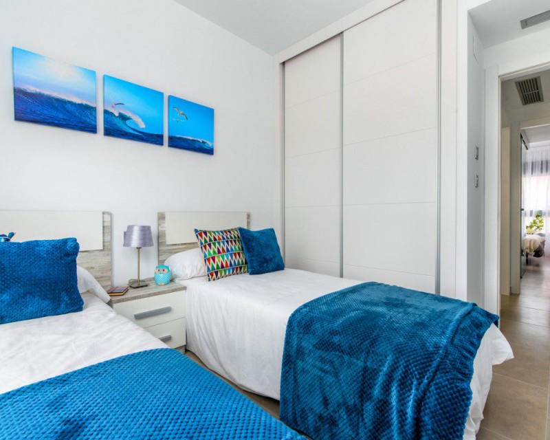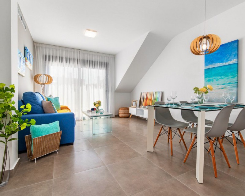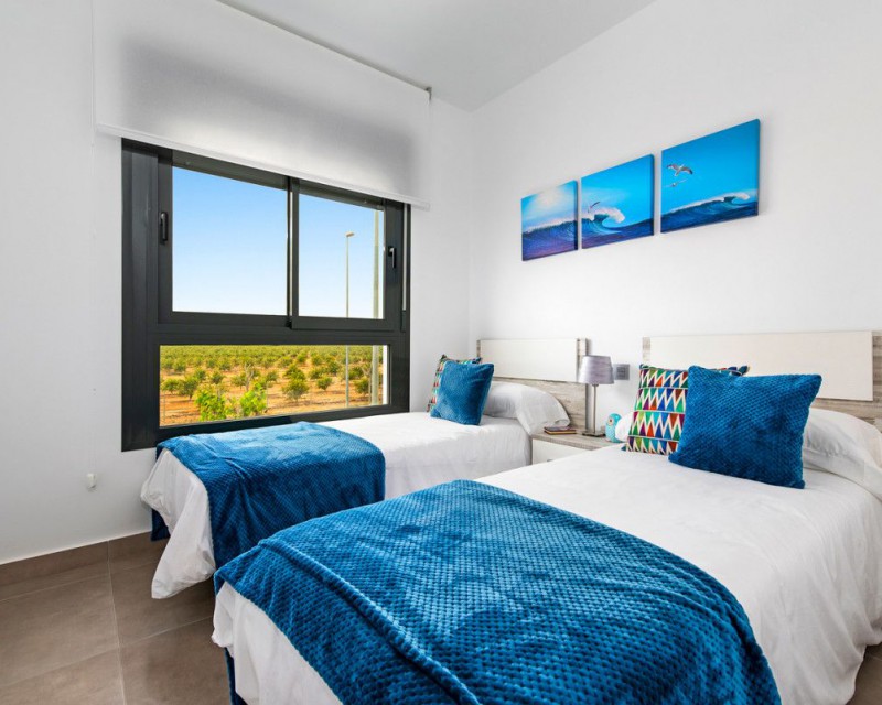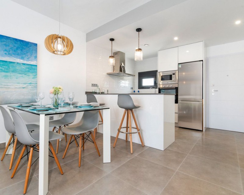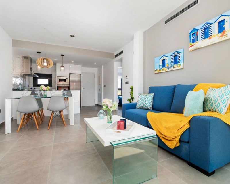 New construction – apartment with 2 bedrooms and 2 bathrooms in Pilar de la Horadada. It is located just 1200m from the beach and within walking distance to the centre of Pilar de la Horadada. The property comprise 2 double bedrooms, 2 bathrooms, large open-plan lounge/dining area, fully equipped kitchen, terrace to the front and private parking space. The development benefits from two resident-only communal swimming pools and landscaped gardens...Pilar de la Horadada is very central to the Costa Blanca, with the sandy blue-flag beaches of Torre de la Horadada, Campoamor and San Pedro del Pinatar only a five-minute drive away and many local amenities including bars, restaurants, shops and supermarkets very close by. The area is well serviced by both Murcia Corvera airport (35 minutes) and Alicante airport (45 minutes).