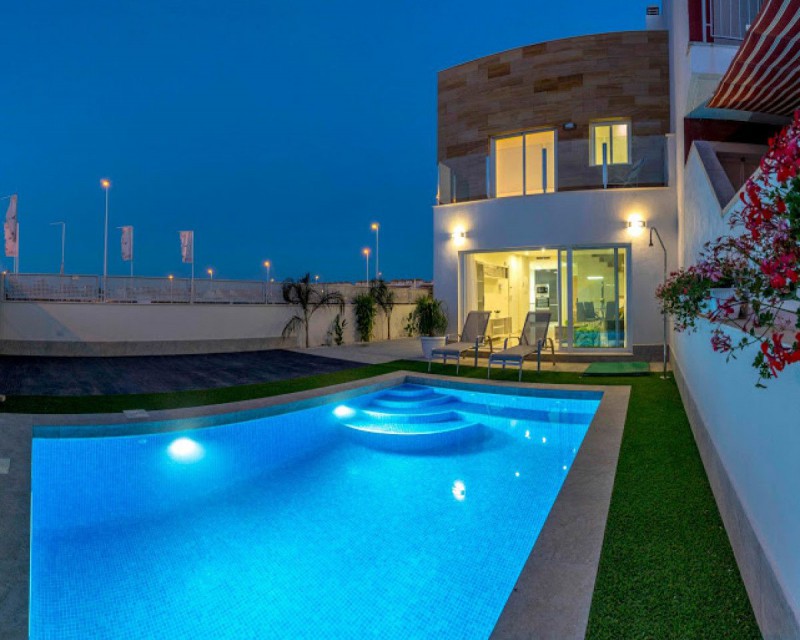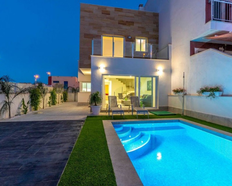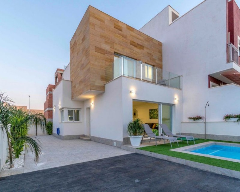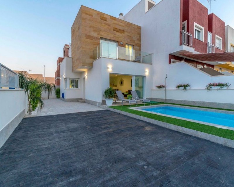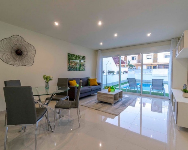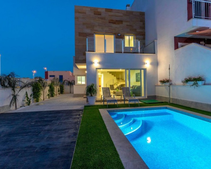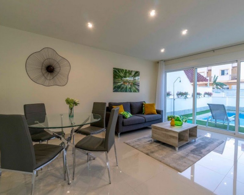This residential offers a 3 bedroom semi-detached villa with private garden and solarium..This property offers spacious living rooms, large terraces, pre installation of air conditioning, a complete white goods package and exceptional build quality as standard. Also included is a private parking space and private pool all set within a quiet residential area..It is located in a beautiful place, surrounded by two seas, the Mediterranean Sea and the Mar Menor that together with the natural park of the lagoons of San Pedro and the mud baths confer a unique location..The location is ideal to enjoy the beaches and promenades that run alongside Lo Pagan and San Pedro del Pinatar, offering the chance to enjoy the wonderful beaches and the great variety of restaurants with excellent sea views. This area also offers a variety of sports activities, including seasonal water sports. With some particularly good golf courses very close by..With the airport of Murcia just a short drive away, as well as the local Thalassia Spa and shopping centre, this really is an ideal location to start enjoying the Spanish lifestyle.