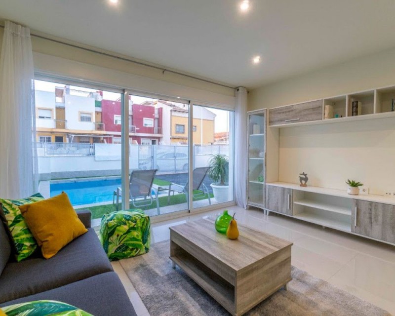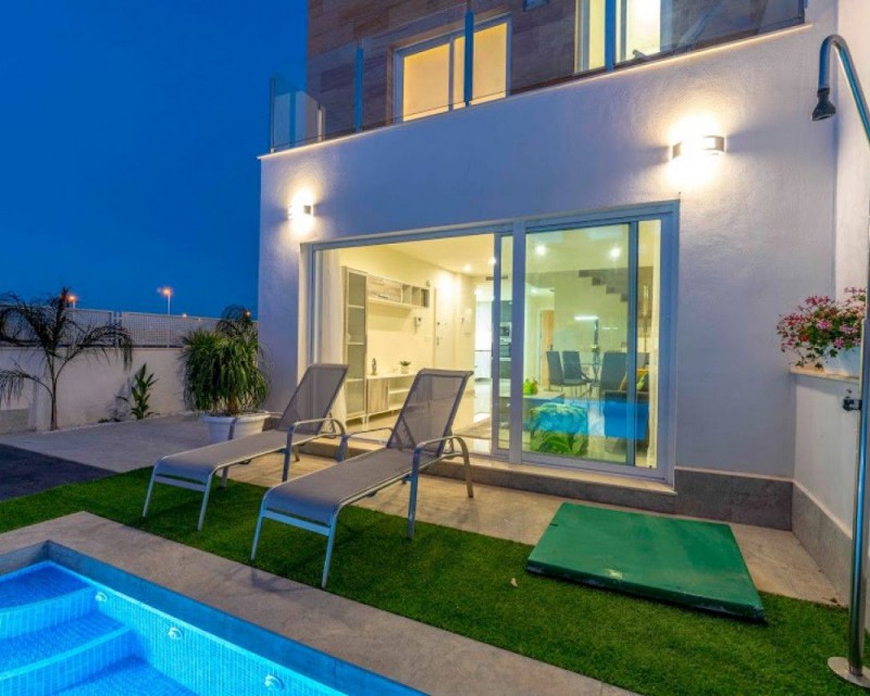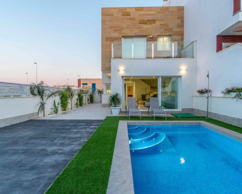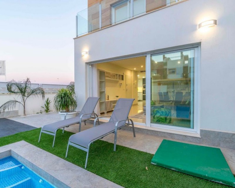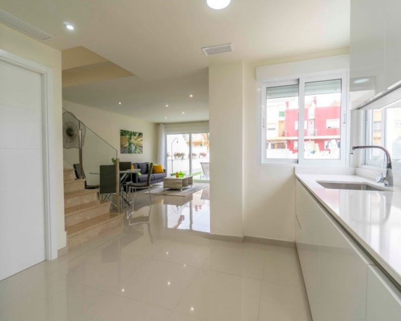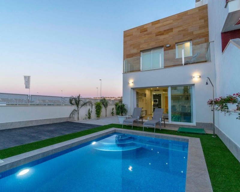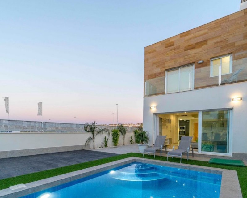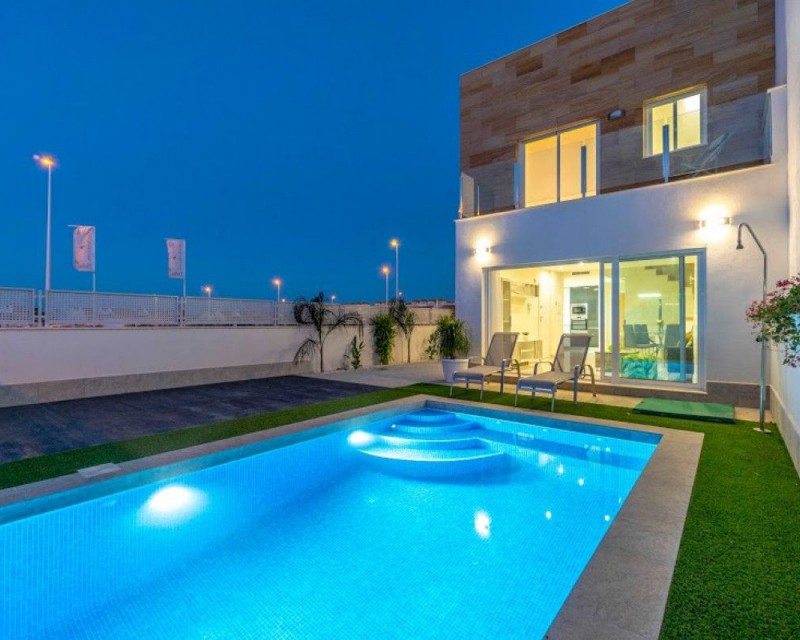 This residential offers a 3 bedroom semi-detached villa with private garden and solarium..This property offers spacious living rooms, large terraces, pre installation of air conditioning, a complete white goods package and exceptional build quality as standard. Also included is a private parking space and private pool all set within a quiet residential area..It is located in a beautiful place, surrounded by two seas, the Mediterranean Sea and the Mar Menor that together with the natural park of the lagoons of San Pedro and the mud baths confer a unique location..The location is ideal to enjoy the beaches and promenades that run alongside Lo Pagan and San Pedro del Pinatar, offering the chance to enjoy the wonderful beaches and the great variety of restaurants with excellent sea views. This area also offers a variety of sports activities, including seasonal water sports. With some particularly good golf courses very close by..With the airport of Murcia just a short drive away, as well as the local Thalassia Spa and shopping centre, this really is an ideal location to start enjoying the Spanish lifestyle.