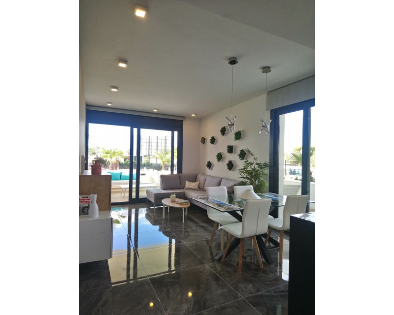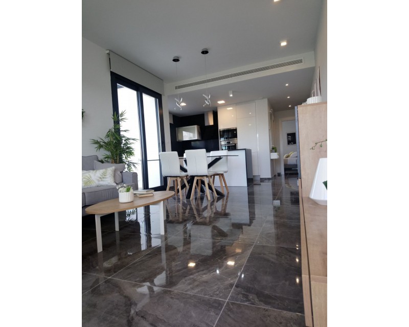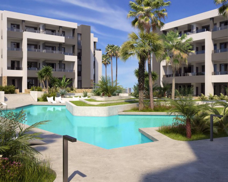 New residential in Orihuela Costa..This Complex is distributed in four buildings of 11 apartments each with two bedrooms and two bathrooms on the ground floor with a private garden and the apartment on the top floor that have large private terraces. They also have a semi-basement for parking and the common areas are surrounded by green areas, gardens, swimming pools / jacuzzy and play ground...INCLUDED ON THE PRICE:.. Communal swimming pool.. Aerotermia.. Air-con.. Parking place.. Childrens play area.. Spa area... , Fully furnished