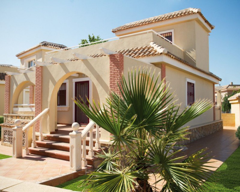 Detached house of traditional and Mediterranean design, West orientation with large spaces outdoors, like the two terraces and the solarium that left you enjoy the climate and the landscape. The living area is 75,37m2, terrace 32,38m2, large solarium of 36,88m2. There is also basemen of 89,39m2t in the villa. Garden 150,36m2. This model of detached house includes following characteristics:.. 2 bedrooms,. Bathroom,. Kitchen,. Living-dining room,. Front and back terrace,. Solarium,. Basement/cellar,. Plot up to 250 m2...This villa is located in a residential development that surrounds an 9-hole Golf Course, with a future extension project to 18 holes. It is basically aimed at those who wish to enjoy nature, but with all the services that the city offers...It is the perfect place for golf lovers, and also for those who enjoy green areas as a place of leisure, beauty and peace...Its strategic position allows all the families that decide to live in this Resort to have at their disposal all the things that anyone may wish to have: a climate where the sun shines the whole year round, nearby beaches, the Mar Menor and its natural muds with tested curative effects.