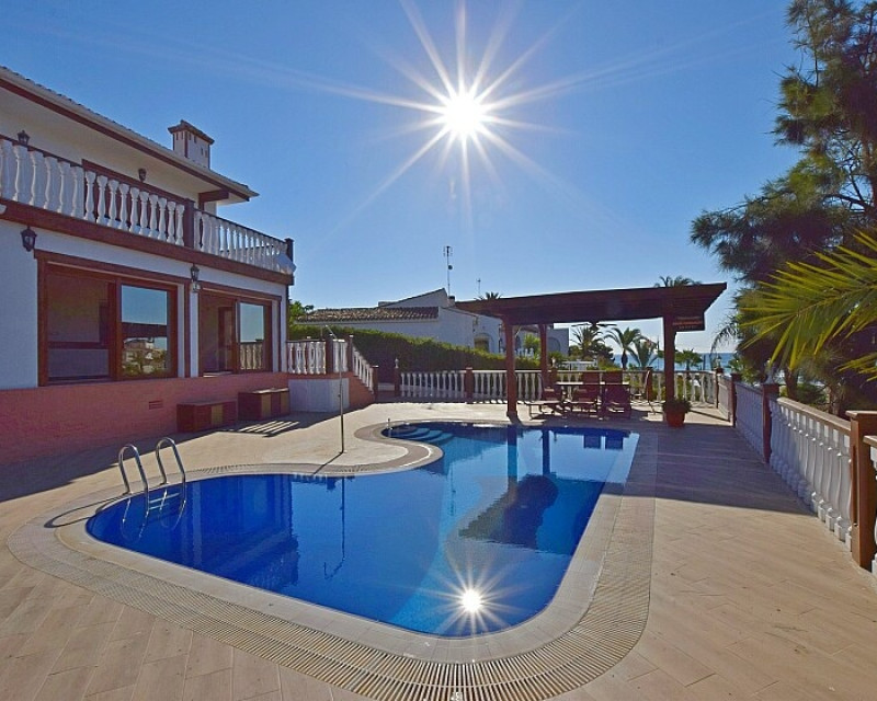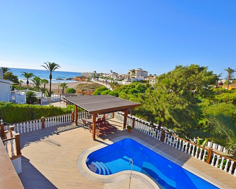 Luxury detached villa overlooking the sea in Orihuela Costa . 6 bedrooms luxury detached villa on a 876 sq.m. plot overlooking the beach. This luxury villa is built on three storeys. The main floor has 4 bedrooms and 4 bathrooms, a large hall and a living room with open kitchen. The first floor has 2 bedrooms, another bathroom and several terraces with different orientations. The lower floor has a garage with room for four vehicles, the heating system installation, stores and another big living room with another kitchen, another bedroom and another bathroom. This property is surrounded by a landscaped garden with several terraces, with sunnny and shade areas and a wooden pergola next to the private swimming pool. It has air conditioning system, central heating, electric shutters, fireplace and is also sold furnished and equipped. Located a few minutes walk to restaurants and bars, supermarkets, public transport and other amenities, 5-10 mins. drive to Torrevieja, several golf courses and the shopping center Zenia Boulevard. Ole International is a fully legal & independent Real Estate Agent specialised in Resales, New build and Bank Properties on the Costa Blanca and Costa Calida. Our office is located in front of the famous Villamartin Plaza and Villamartin Golf Club-house. We have multilingual staff to treat our clients in their own languages. We offer you a reliable, honest and professional service, after a few decades of experience in the sale of properties in the Southeast of Spain. Our aim is assist you from start to finish in you Spanish property search and purchase, helping in the aftersales and conveyancing service later. If you need to contact us with any question or to have a more direct contact with any of our sales persons, our office telephone is (0034) 966764302, our general contact email is info@oleinternational.com. We are always at your disposal.