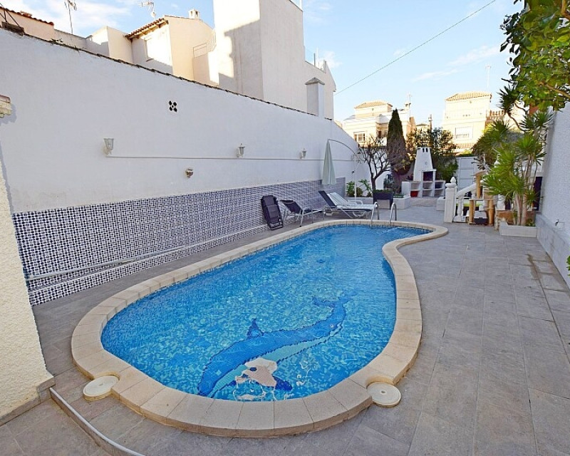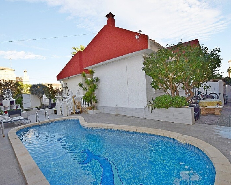 Spacious 3 bedroom detached villa & guest house near the beach in Torrevieja . Spacious 3-bedroom villa with guest house near Los Locos beach in Torrevieja This house has 3 bedrooms and 2 bathrooms, living room with fireplace, two terraces, private pool, central heating and backyard with several storage rooms. It also includes a guest studio with living room and kitchen. The entire house is landscaped, with a barbecue. A few meters from the beach, restaurants, cafes, public transport and other services.