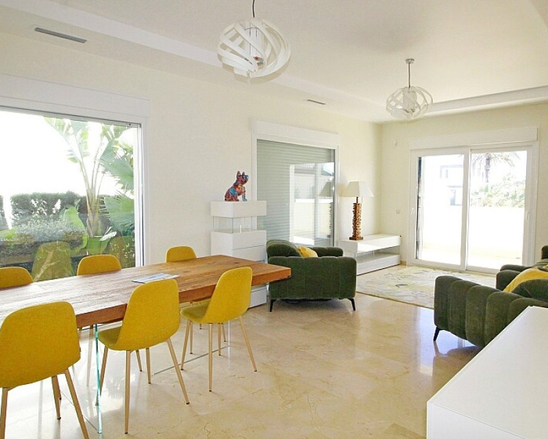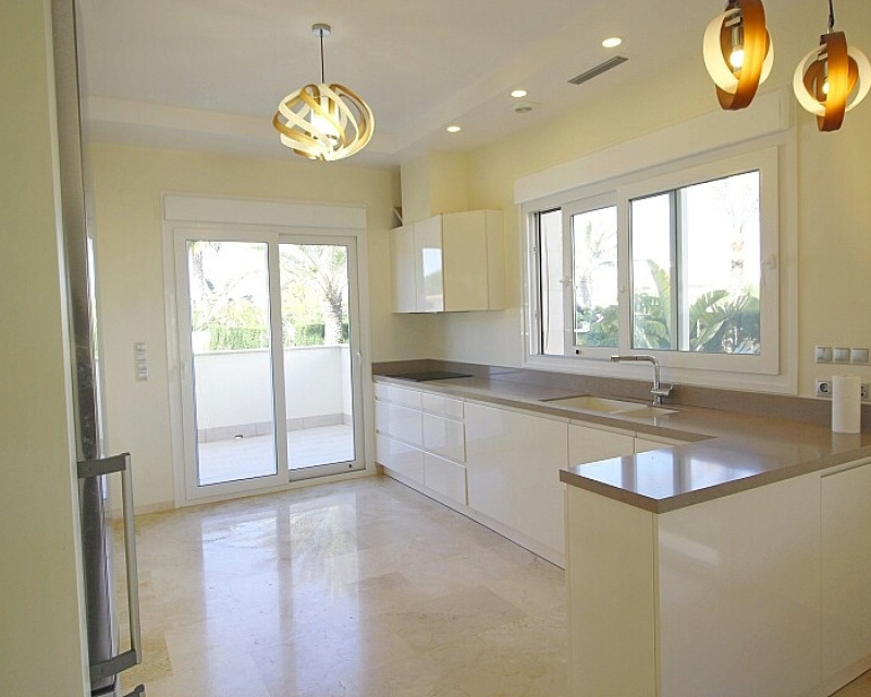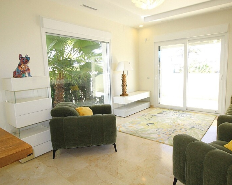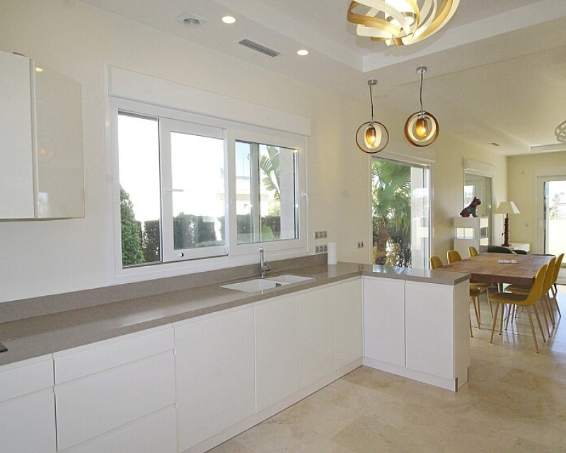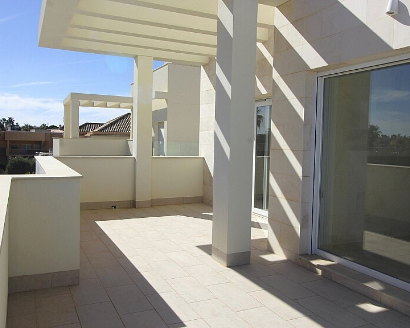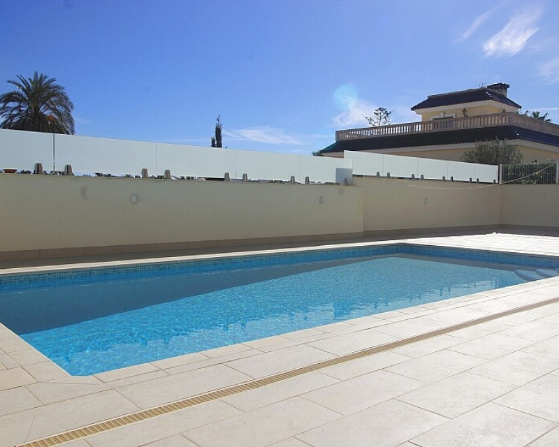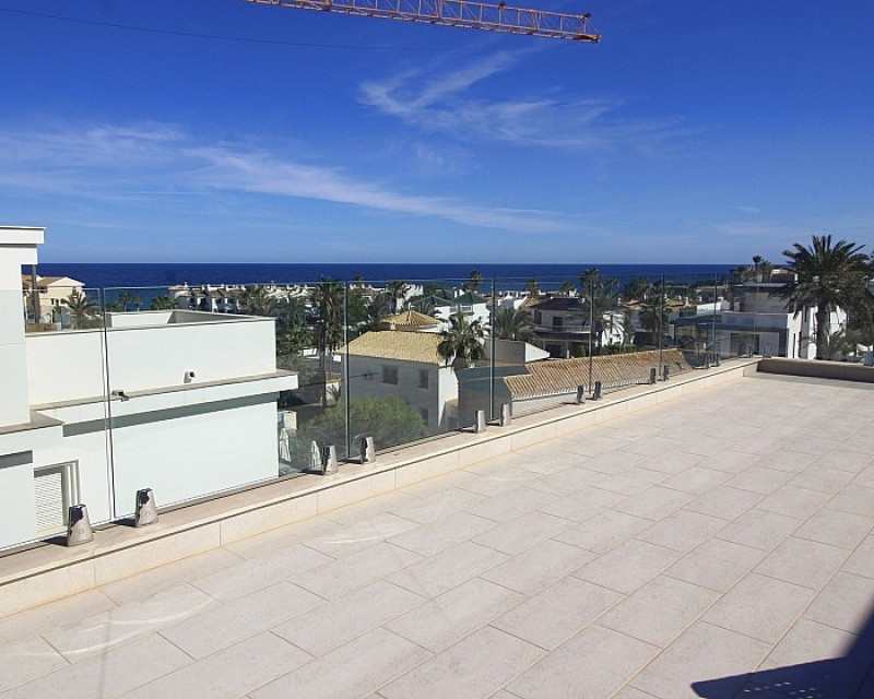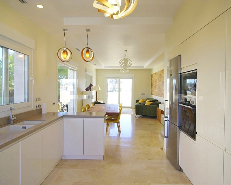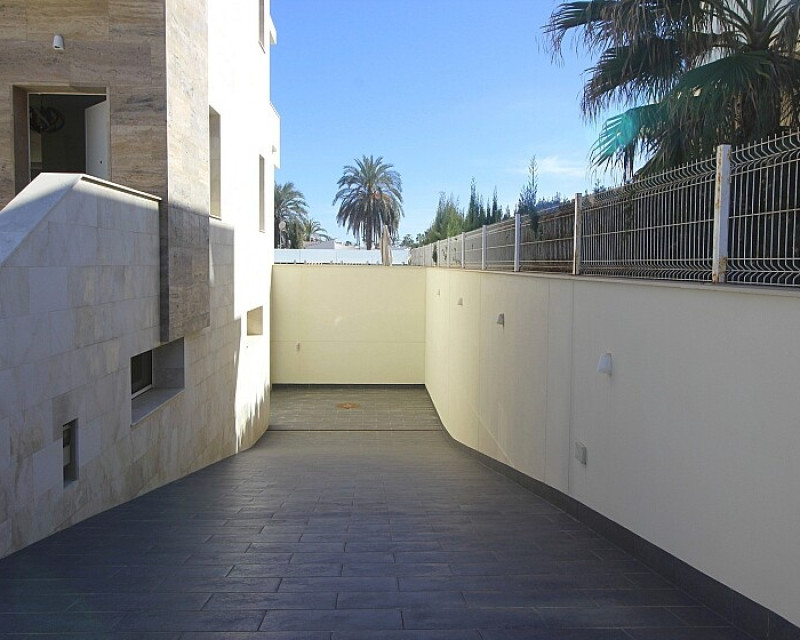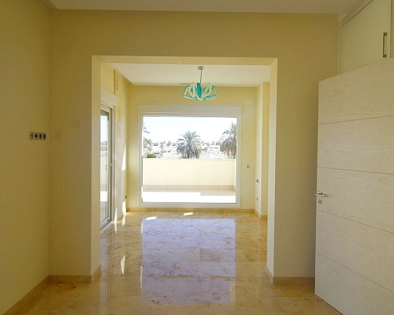 Detached 5-bedroom villa with sea views in La Zenia. Splendid luxury villa a few meters from the beach of La Zenia. This chalet has 3 floors with 5 bedrooms and 4 bathrooms, an open kitchen with a large living room and underfloor heating throughout the house. It is a modern and elegant building with a private pool and garden, an underground garage and a solarium with panoramic sea views. The house is a few meters from La Zenia beach, very close on foot to restaurants, cafes and bars, public transport and other services. 15 minutes walk to the La Zenia Boulevard shopping center, 10-15 minutes by car to several golf courses and the city of Torrevieja.