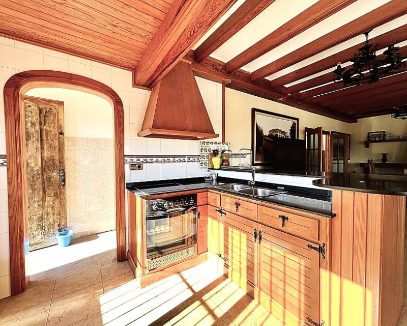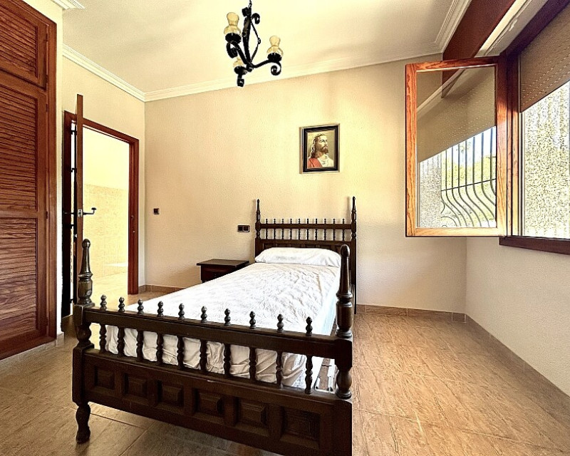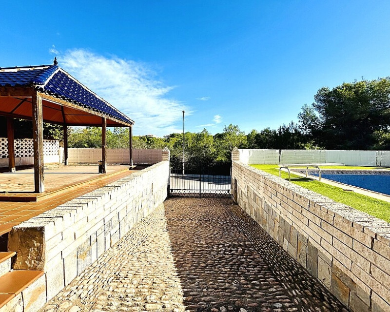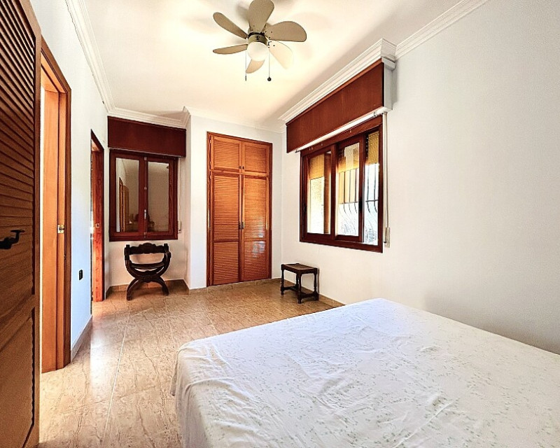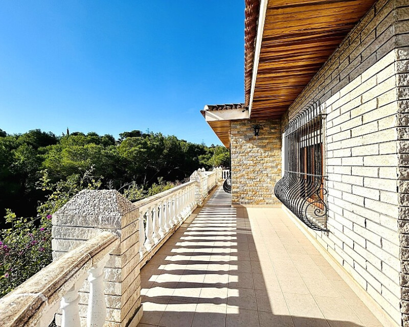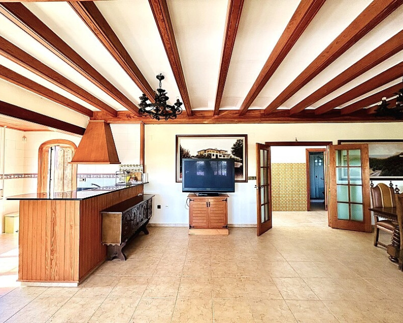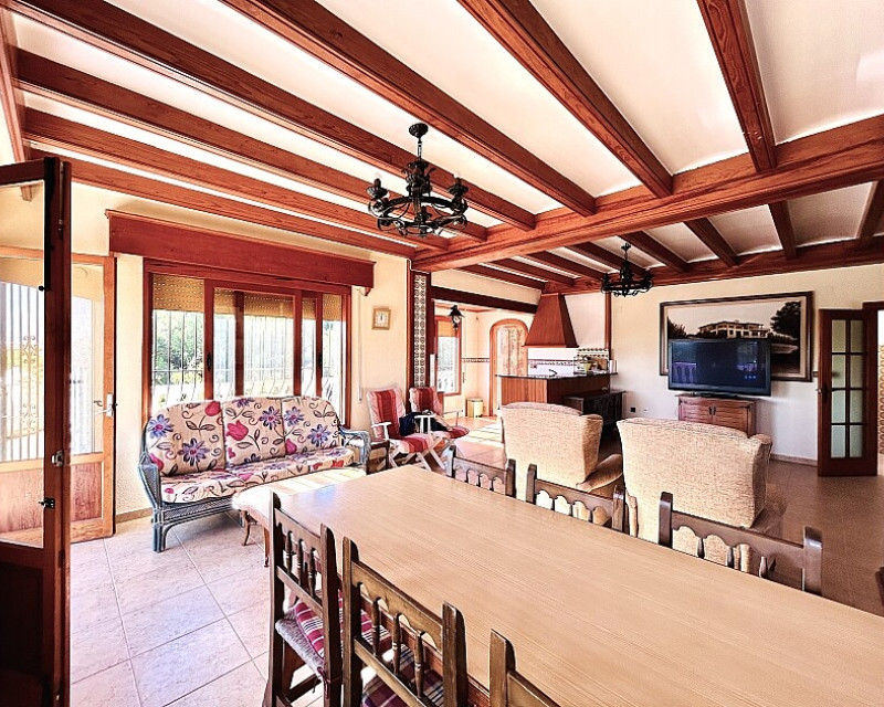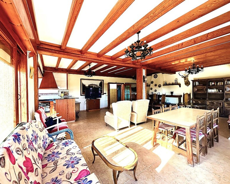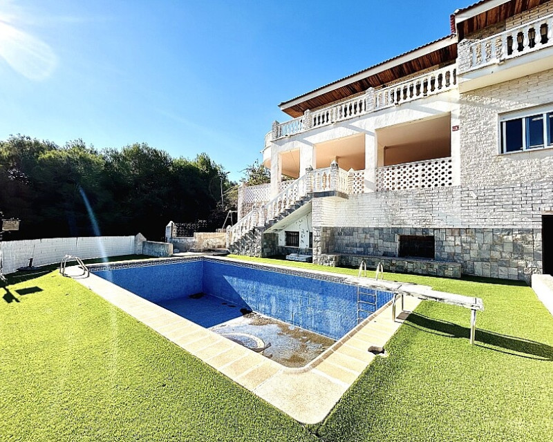 Detached villa in Dehesa de Campoamor. Detached villa with large garden, garage and private pool just a few metres from the beach of Dehesa de Campoamor. The house has 800 m2 built on 3 levels. On the ground floor there are 8 bedrooms, 7 bathrooms, a spacious living room with open kitchen, fireplace and a large terrace. On the ground floor there are another 2 bedrooms, 2 bathrooms, a spacious living room with kitchen and a covered terrace. In the basement there is a large garage for 2-3 cars and additional spaces where more bedrooms, a wine cellar, sauna, gym or similar can be made. The house is built on a plot of 1020 m2, with a large swimming pool, garden, gazebo and barbecue area. The house is ideal for living all year round or for renting. It is the ideal investment to open a mini-hotel with 8-10 rooms. It enjoys an ideal location on a hillside with panoramic views of the sea and the original coniferous forest of the Dehesa de Campoamor.
