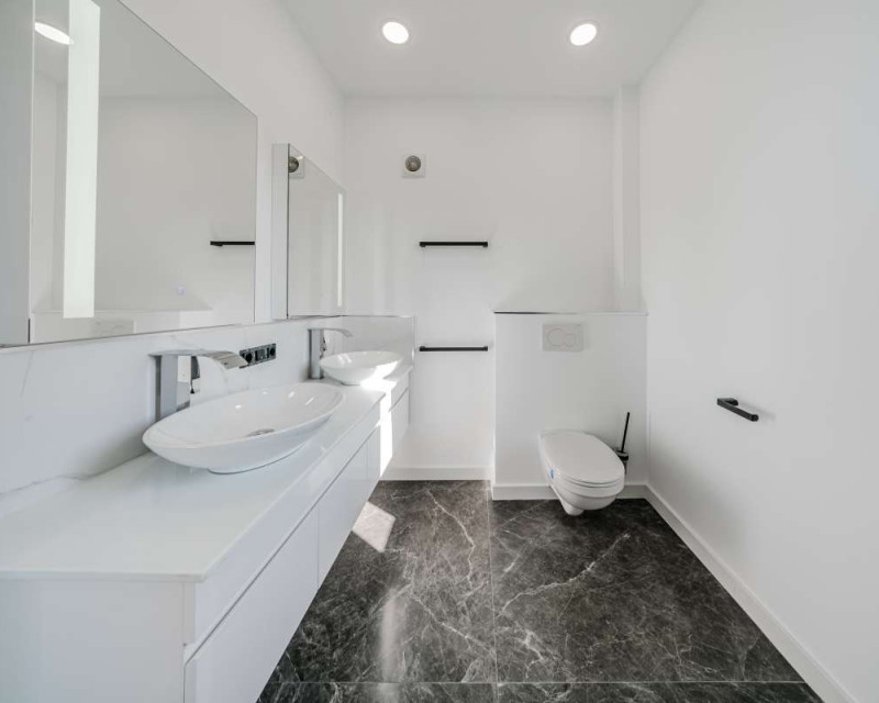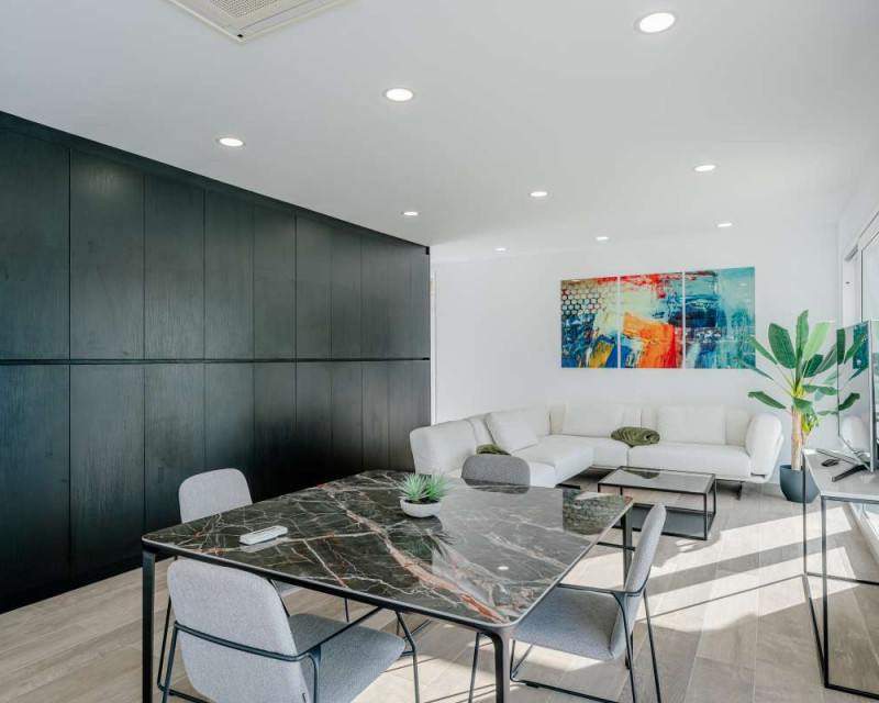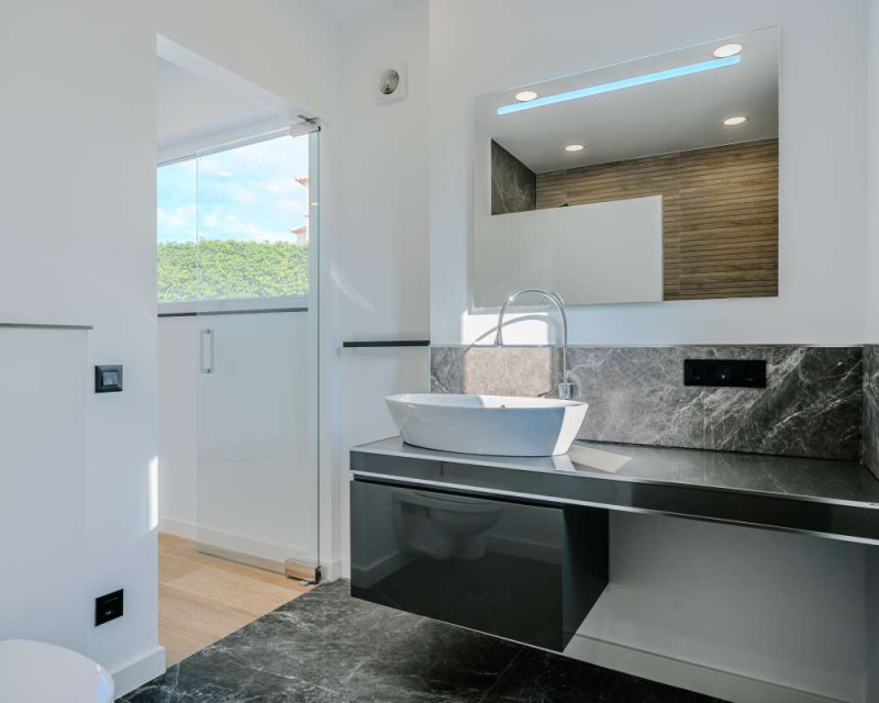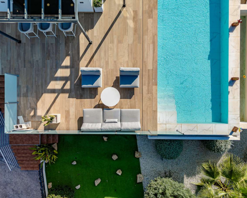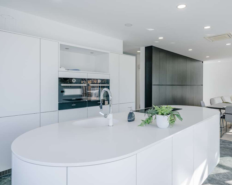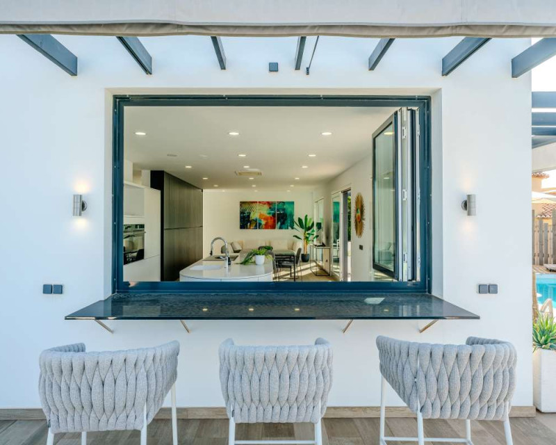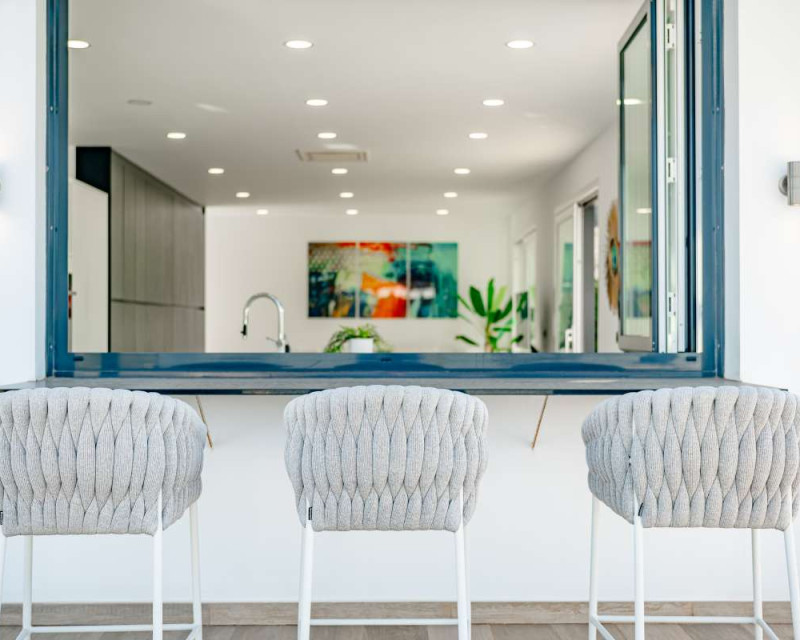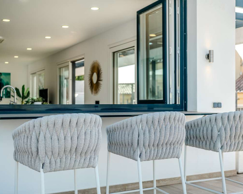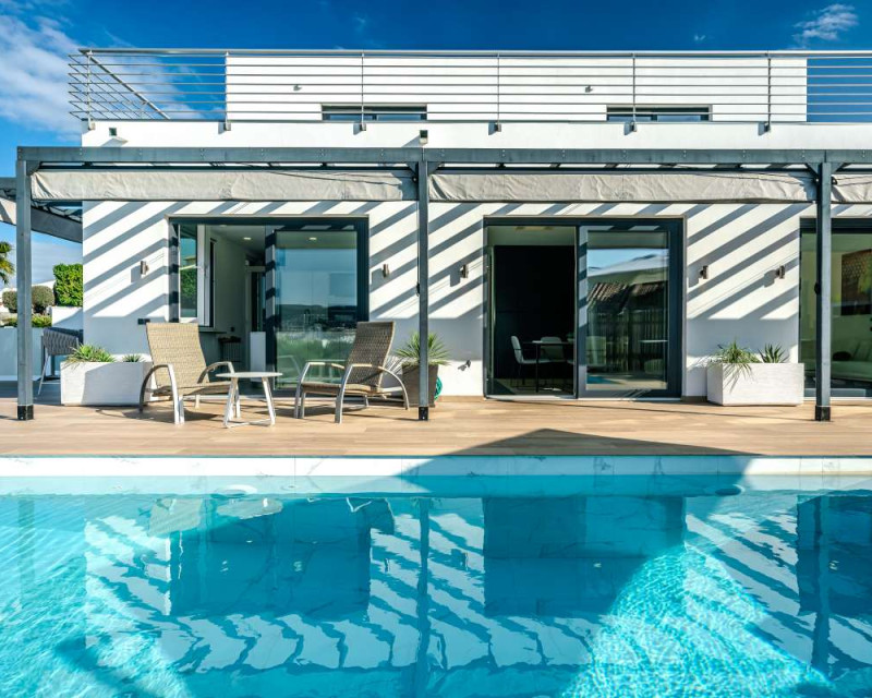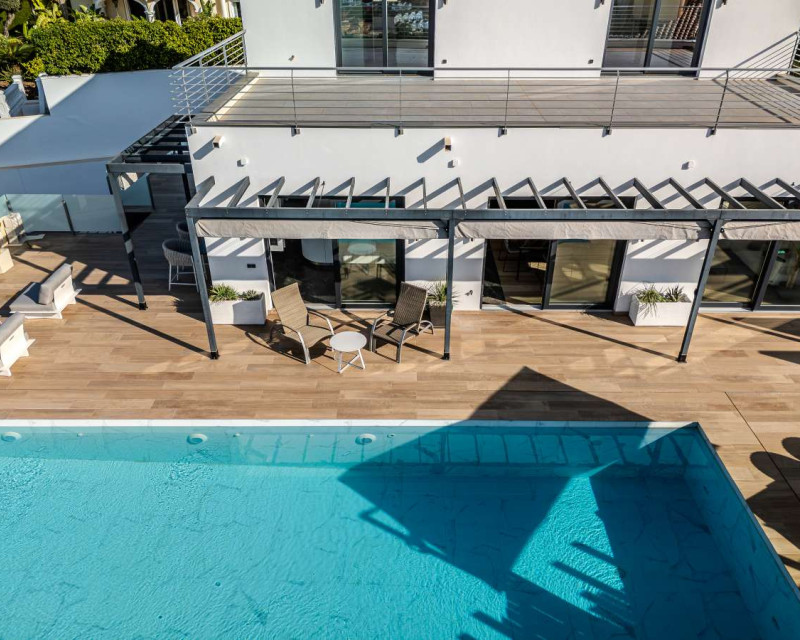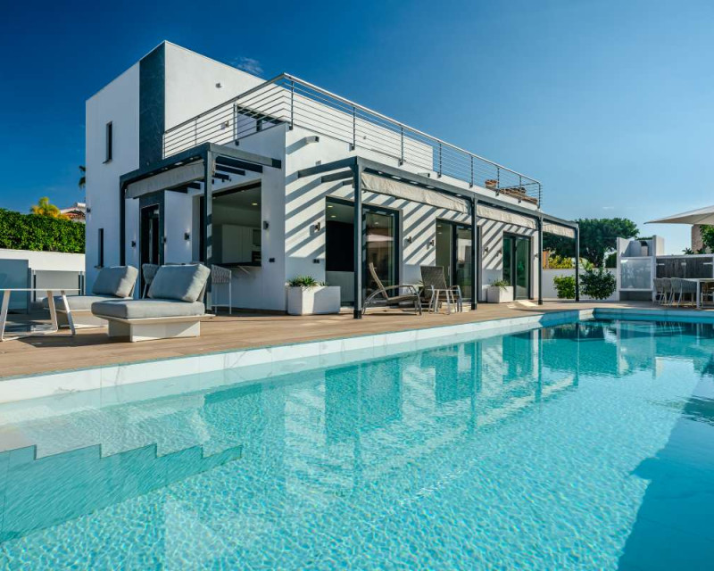 CALPE | MODERN VILLA WIITH PANORAMIC VIEWS br>br> Modern bioclimatic villa for sale in Calpe, in the Casanova urbanization, situated just 1 Km from the town centre of Calpe, from the most incredible beaches and from all services. This new built modern design villa enjoys very good panoramic views to the sea (and to the Peñón de Ifach, symbol of the Costa Blanca) and sun all day (South orientation). It is Located on a 900 m2 plot and has a living area of 204 m2 distributed over 2 floors + basement as follows: entrance hall + corridor of 10 m2 (perfectly equipped with built in wardrobes), 2 large bedrooms (12 m2 + 12 m2), each with built in wardrobes and en suite shower room, 1 guest toilet, magnificent open plan kitchen dining living room (all connected, with island, in total 50 m2) that communicates with a large exterior terrace (+100 m2), where we find a fabulous 42 m2 rectangular pool with endless effect, a beautiful outdoor shower and a handy chill out area located next to the kitchen area. The upper floor is accessed through an internal staircase. On the upper floor we have 2 large bedrooms (12 m2 + 12 m2), both with built in wardrobes and bathroom en suite, and a magnificent private terrace of 60 m2. In the basement (independent access), we have an giant garage (multipurpose area) of 142 m2 that offers a multitude of development possibilities to this property. In addition, it has a 6 m2 technical room and a 20 m2 storage room. We are facing a new and avantgarde construction concept, which has an insulation that complies with future regulations, highlighting for example its PVC windows with triple glazing. Therefore, this property has a very low energy consumption and maintains a constant ambient temperature of 22 degrees. There is even an installation of photovoltaic solar panels that reduce electricity consumption to a minimum. It is equipped with with air conditioning in the living room and master bedroom, 100% equipped designer kitchen (Bosch), high end exterior carpentry with safety glass, automatic shutters, designer bathrooms, LED lighting, glass railings, alarm… In addition, it enjoys large exterior parking areas for several vehicles. Here we have the opportunity to own one of the few truly bioclimatic properties existing on this beautiful Mediterranean coast, which also offers an excellent location and beautiful panoramic views of the sea and of the mountains.br>br> VIDEOS: https://vimeo.com/1034489730 https://vimeo.com/1034489563