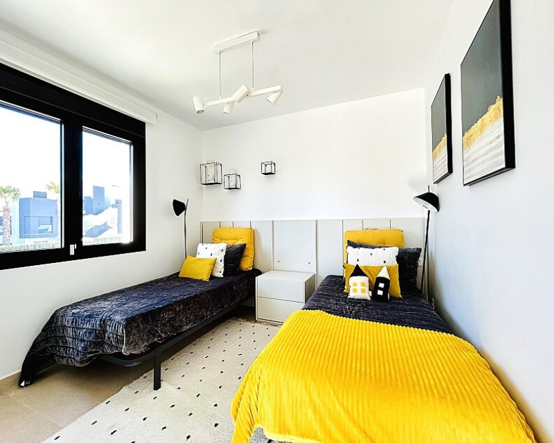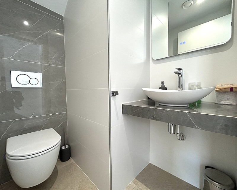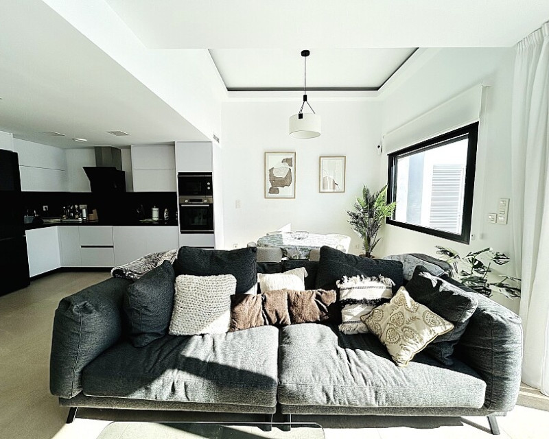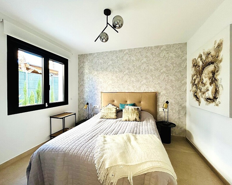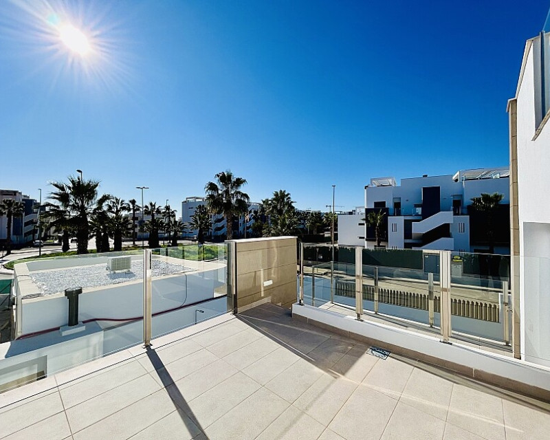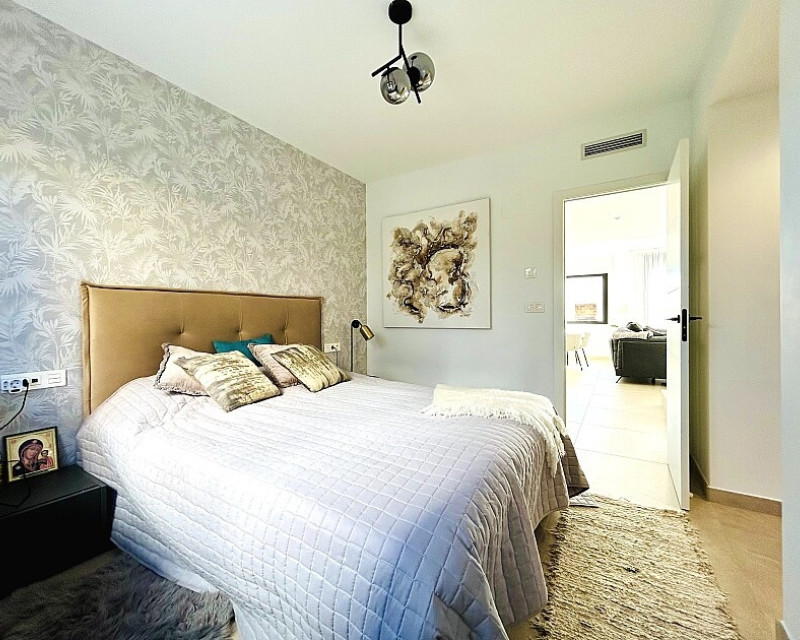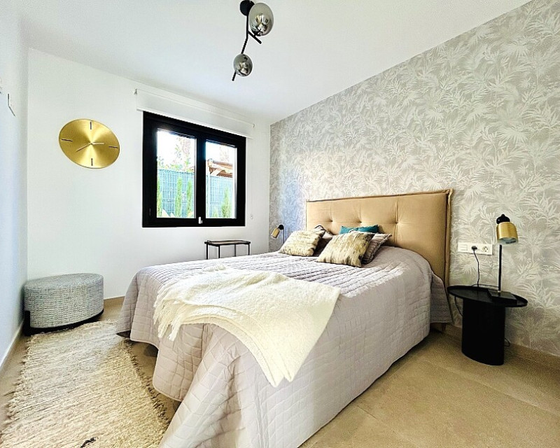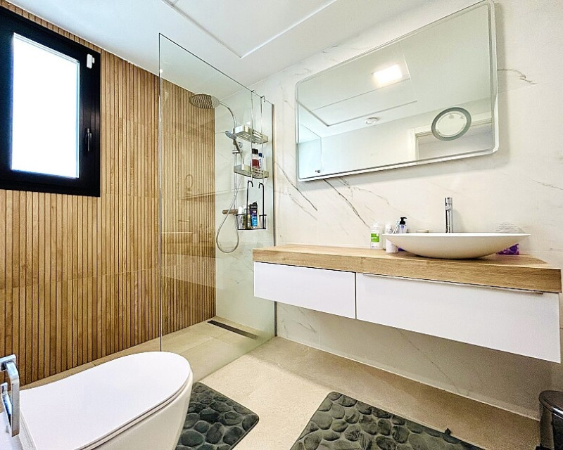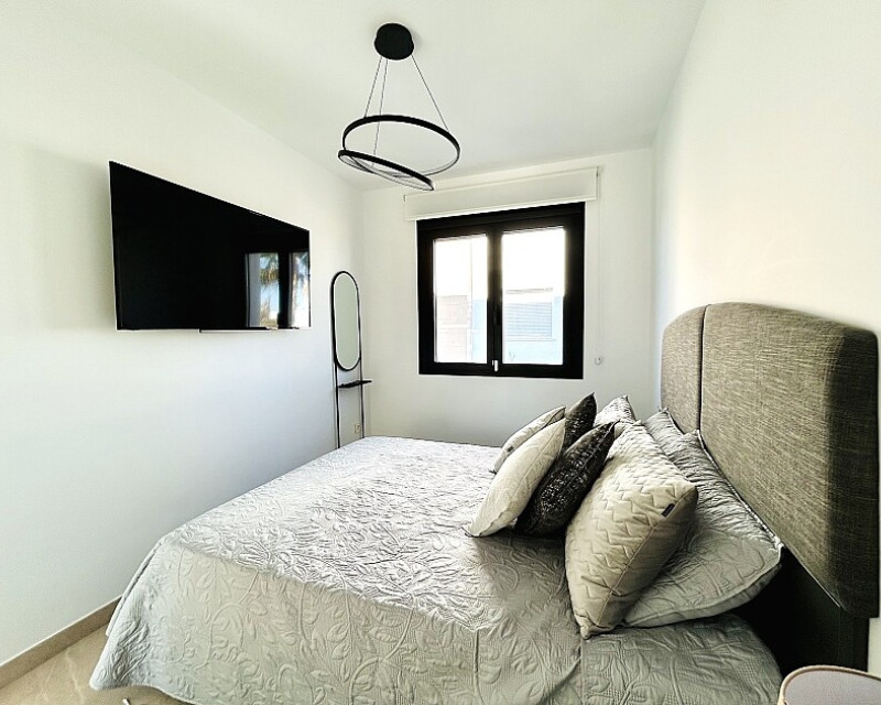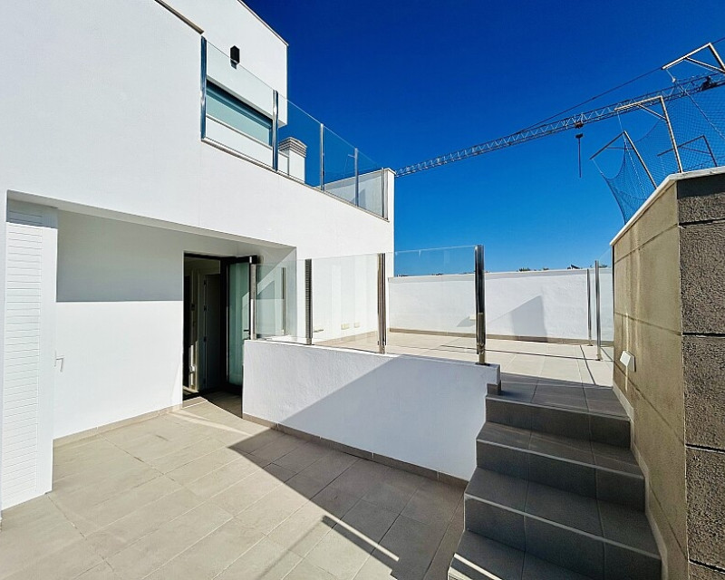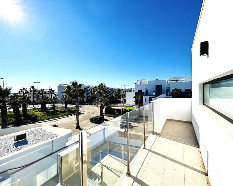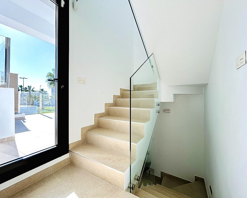 3 bedroom detached villa with pool in Guardamar del Segura with garden and pool in Guardamar del Segura . Detached two-storey villa with private plot in El Raso, 10 minutes drive to La Mata beach and Guardamar del Segura. The ground floor consists of a living room, kitchen, toilet, a bedroom with dressing room and bathroom . On the first floor , which is accessed by the internal staircase from the ground floor, there are two bedrooms, a bathroom and access to a porch, terrace and solarium with pergola. It is in very good condition, has air conditioning, electric blinds, underfloor heating in the bathrooms, built-in wardrobes, and is sold with furniture and appliances. You can also enjoy a private pool, garden, parking and summer kitchen.