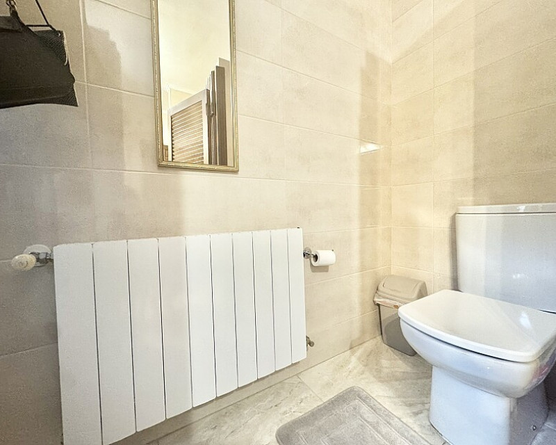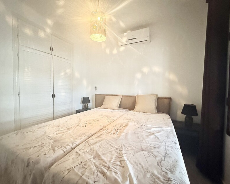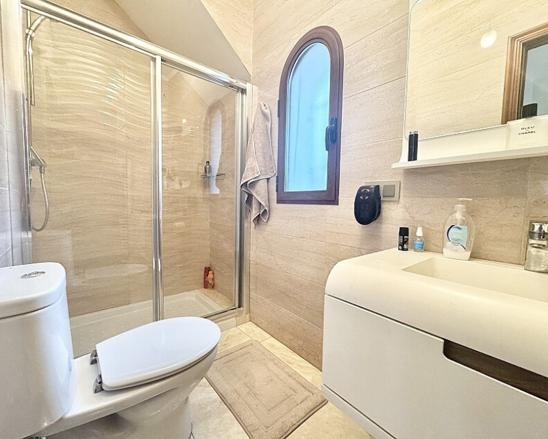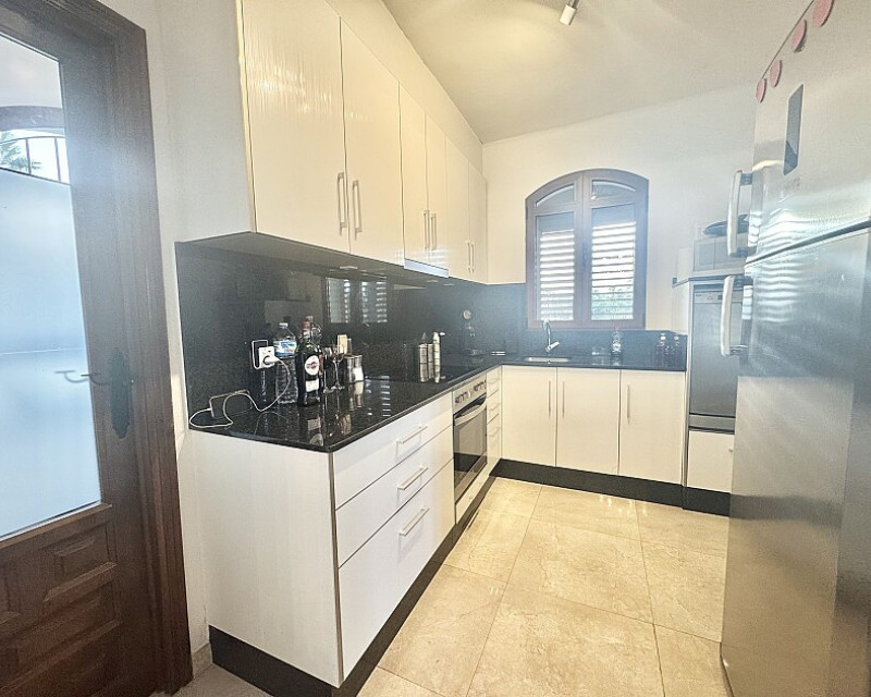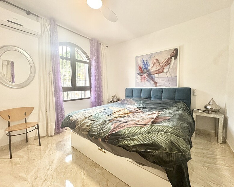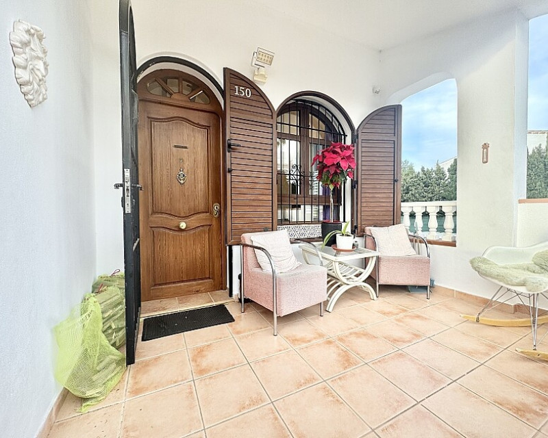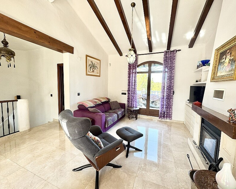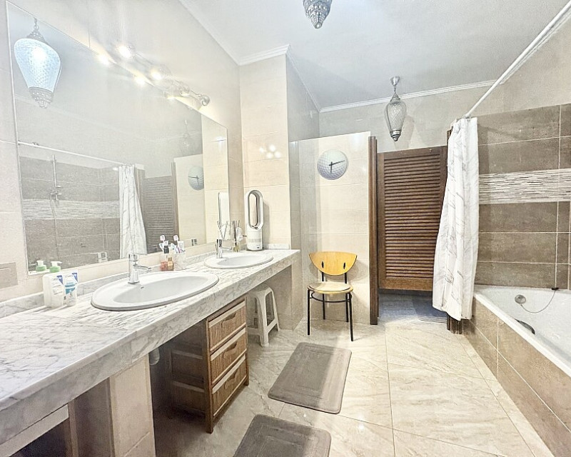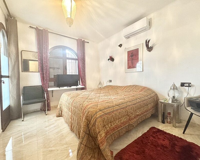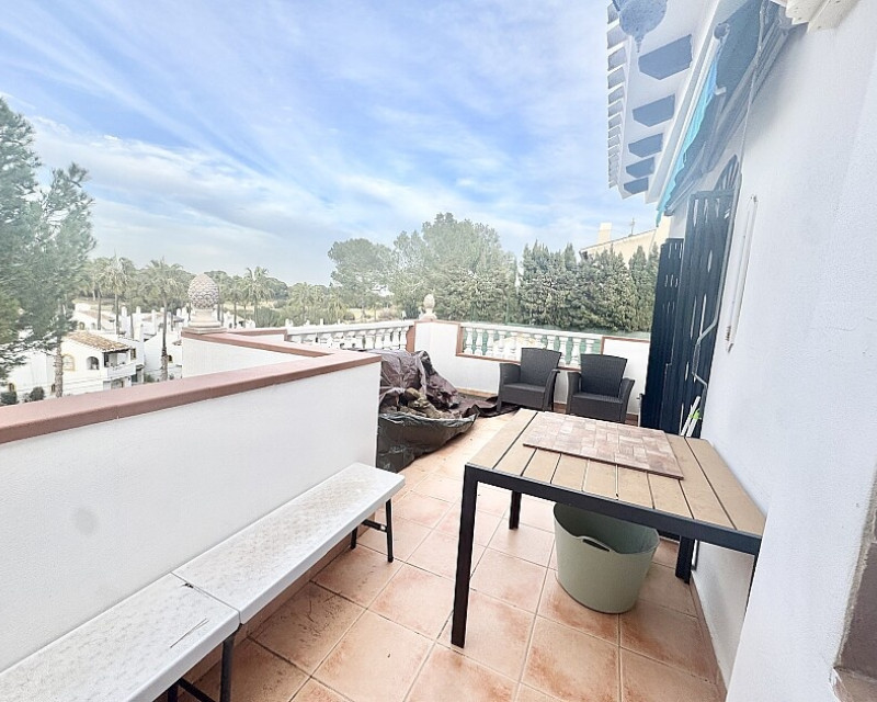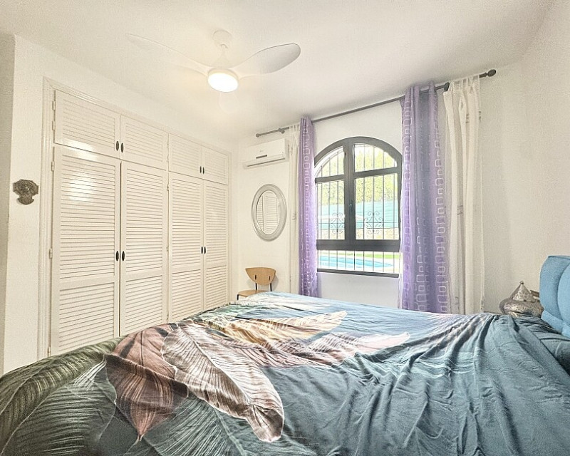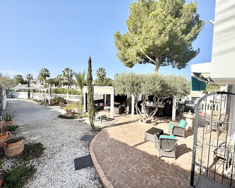 4 bedroom detached villa with views to Villamartin golf course. Detached villa with 4 bedrooms and 2 bathrooms and private pool. This south-facing villa with views of the Villamartin golf course enjoys a large 900 m2 plot, private pool, jacuzzi and solarium. Sold fully furnished and equipped, recently renovated and with a fireplace on each floor and air conditioning. This chalet has a tourist license, therefore it is a great opportunity either for investment or to live all year round. It is located 20 minutes walk from the square and the golf course of Villamartín and a few minutes drive from the beaches of Orihuela Costa.