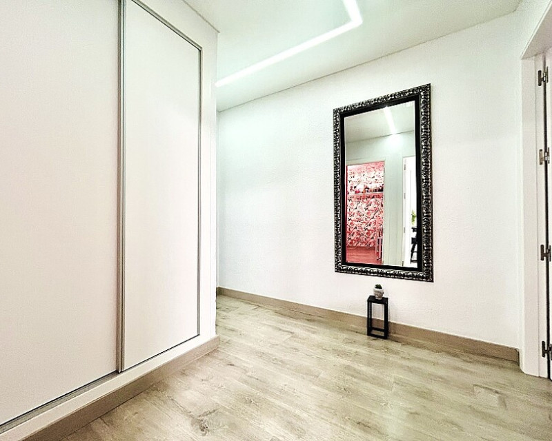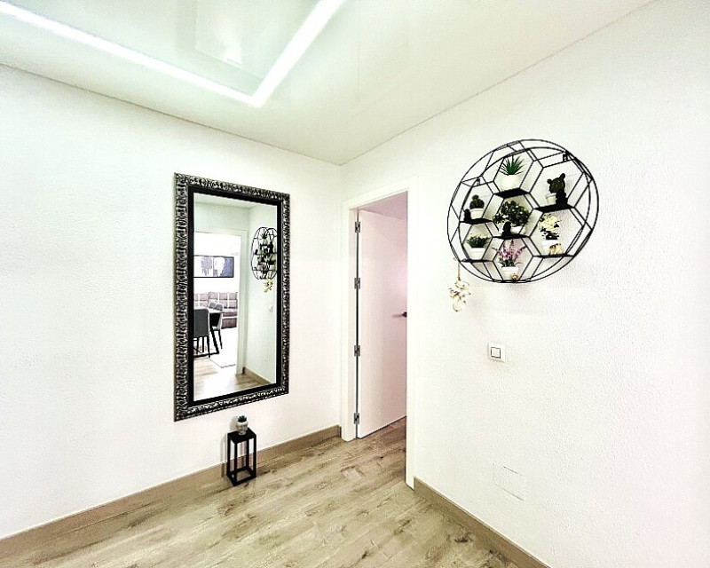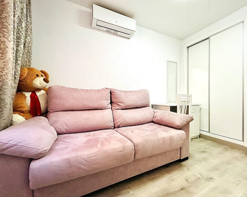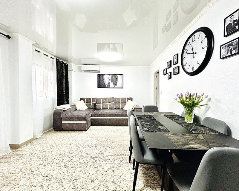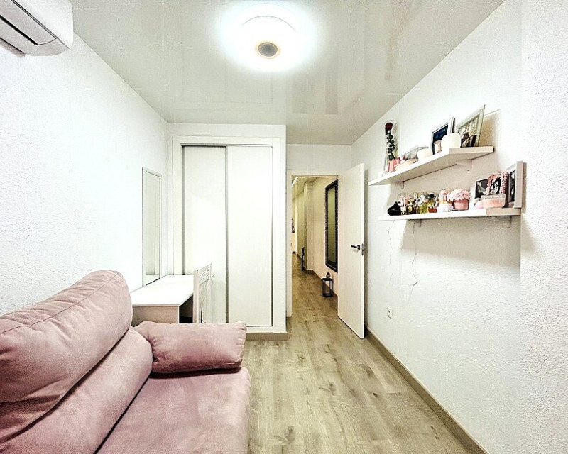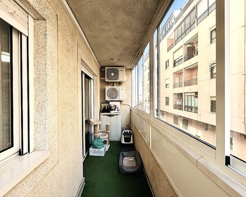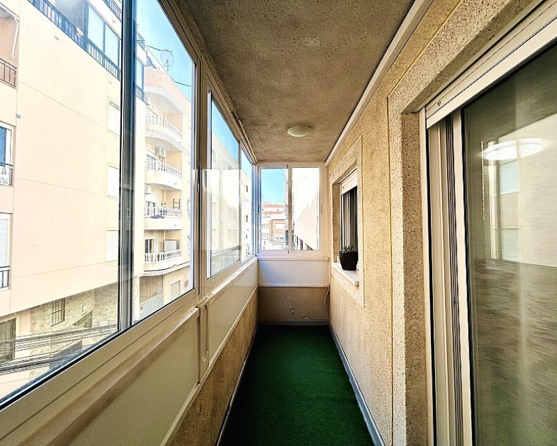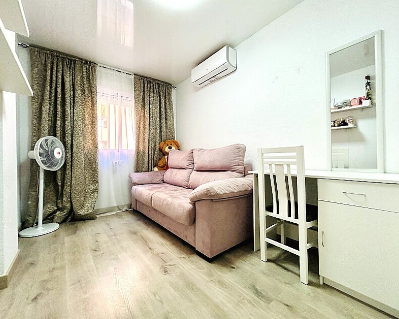 Apartment with 4 bedrooms in Aguas Nuevas (Torrevieja). Spacious apartment in the centre of Torrevieja. This renovated first floor home has 4 bedrooms, one of them with a private bathroom and another bedroom with a private patio, a living-dining room, a separate kitchen, a laundry room and a glazed terrace. It is kept in very good condition, it is sold fully furnished, with air conditioning, built-in wardrobes and a fully equipped kitchen. The building has an elevator and underground parking, with the possibility of renting or buying a space. Very good location: walking distance to all amenities, restaurants, cafes, supermarkets, public transport... 15 minutes walk to the weekly market, water park, sports centre and the Ozone, Habaneras and Carrefour shopping centres, the same time to the promenade and city centre.