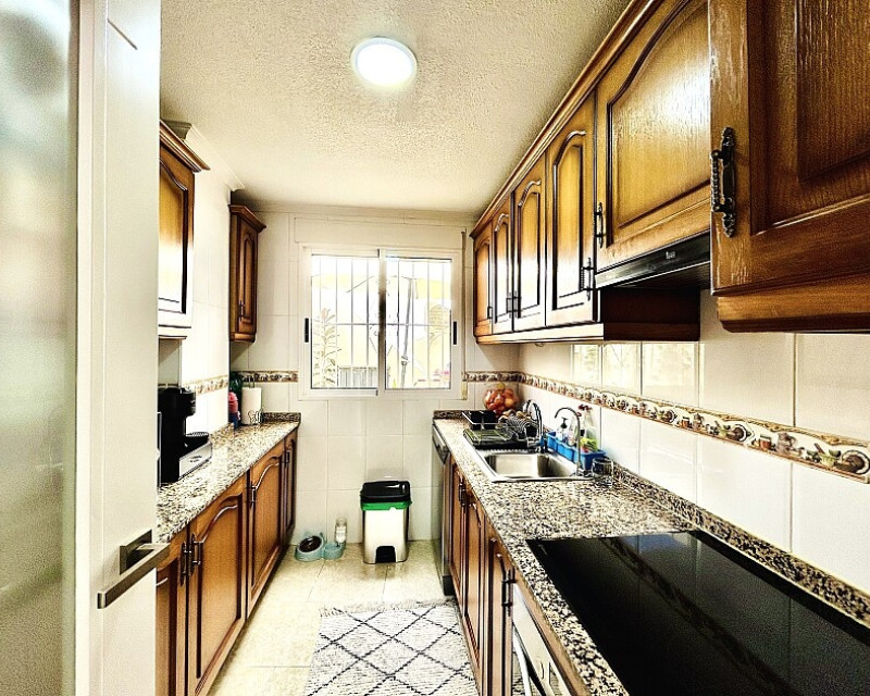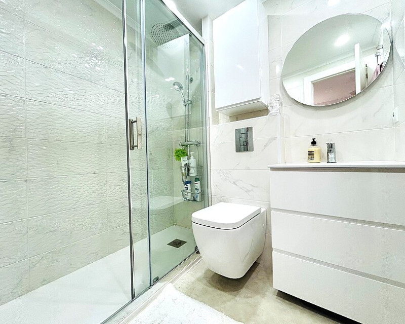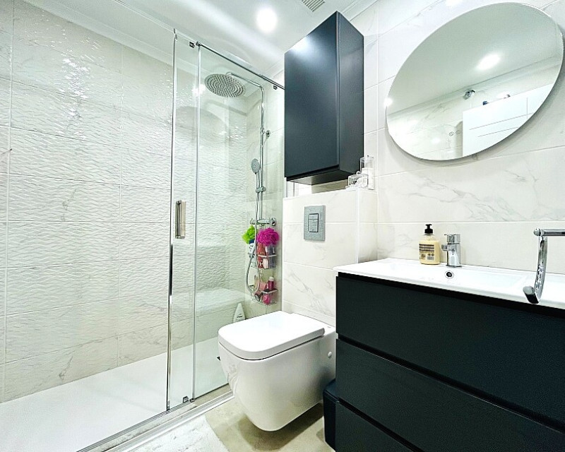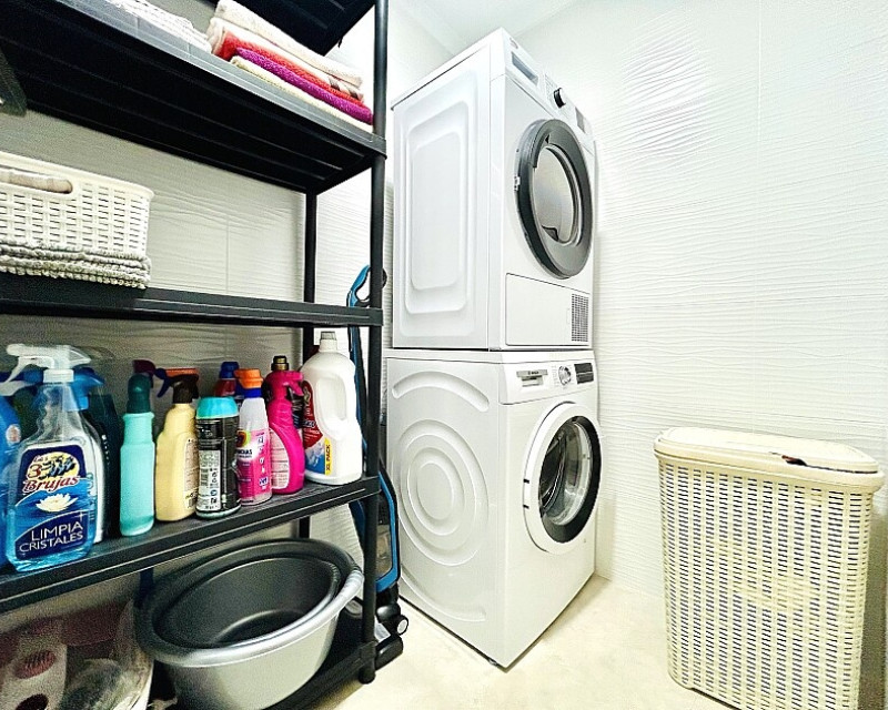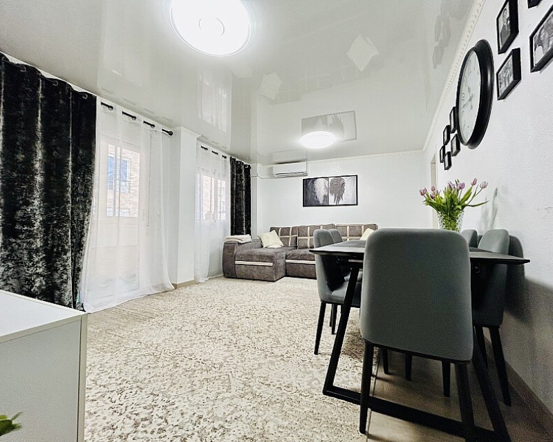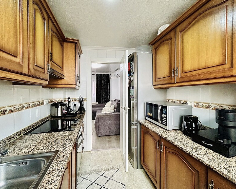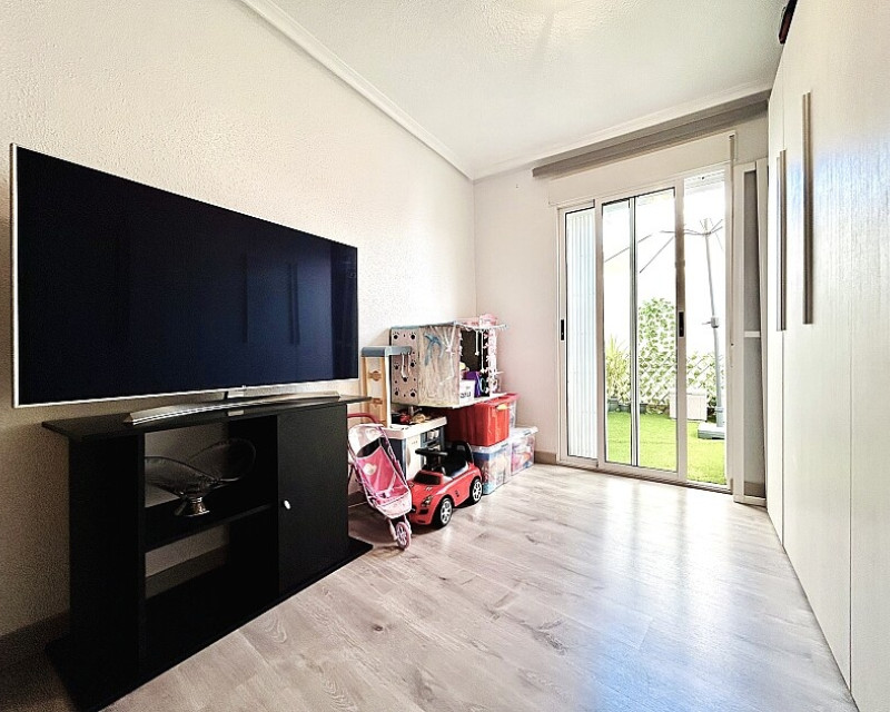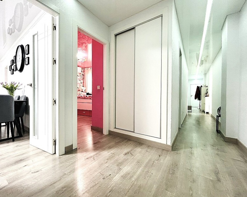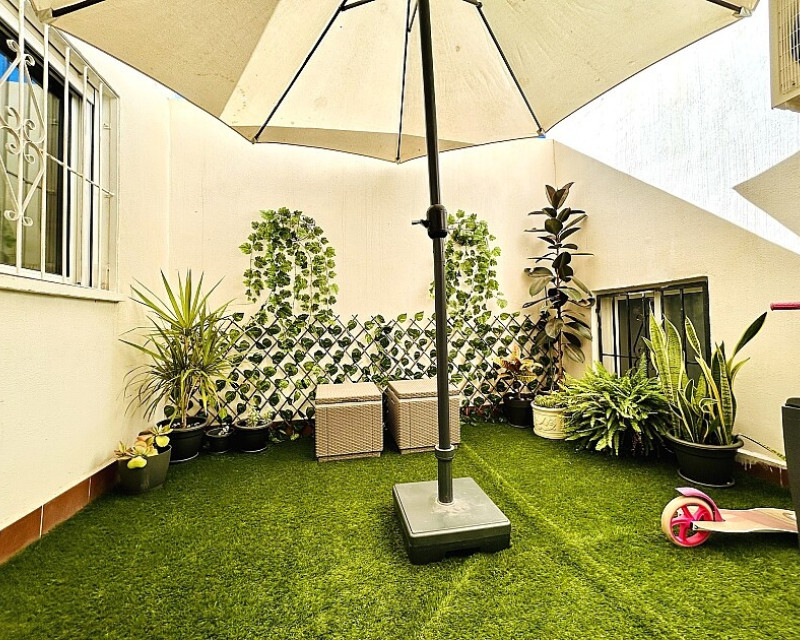 Apartment with 4 bedrooms in Aguas Nuevas (Torrevieja). Spacious apartment in the centre of Torrevieja. This renovated first floor home has 4 bedrooms, one of them with a private bathroom and another bedroom with a private patio, a living-dining room, a separate kitchen, a laundry room and a glazed terrace. It is kept in very good condition, it is sold fully furnished, with air conditioning, built-in wardrobes and a fully equipped kitchen. The building has an elevator and underground parking, with the possibility of renting or buying a space. Very good location: walking distance to all amenities, restaurants, cafes, supermarkets, public transport... 15 minutes walk to the weekly market, water park, sports centre and the Ozone, Habaneras and Carrefour shopping centres, the same time to the promenade and city centre.