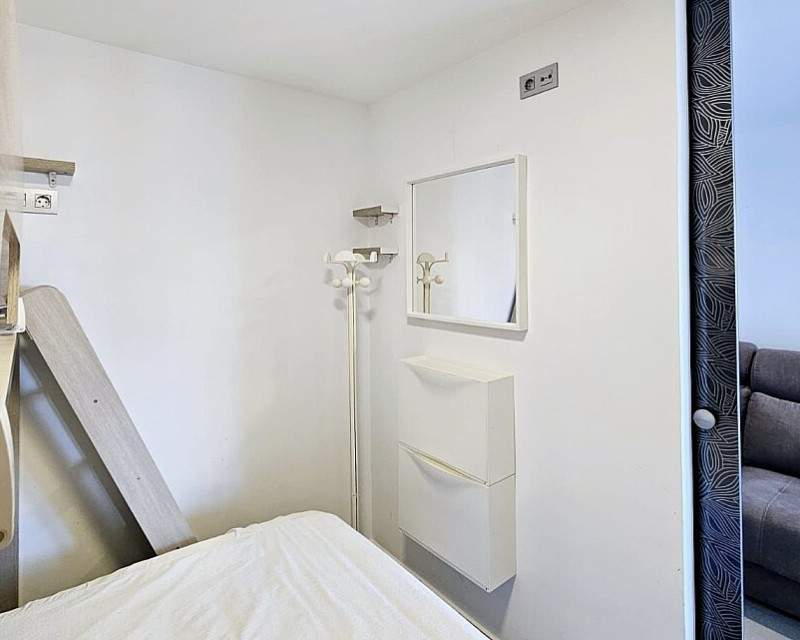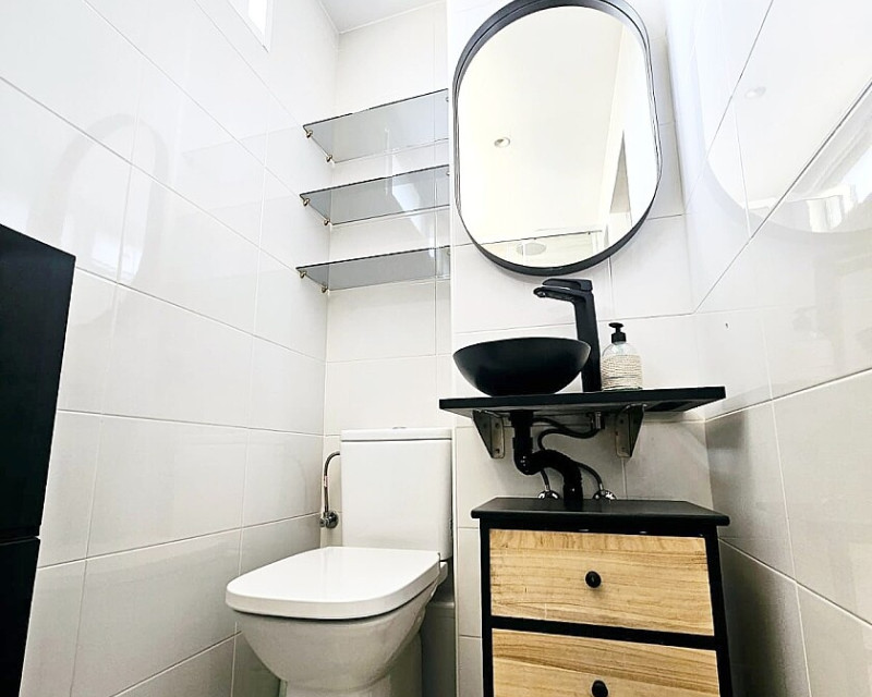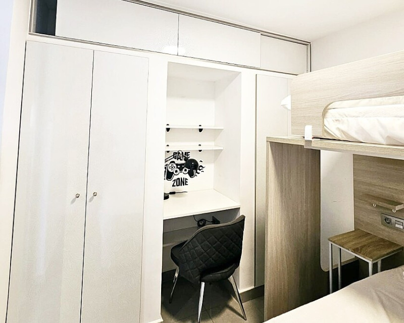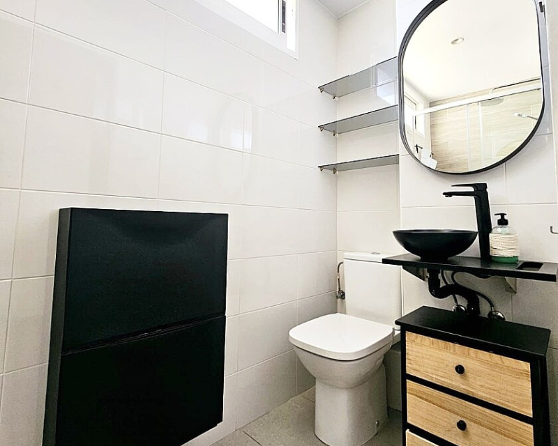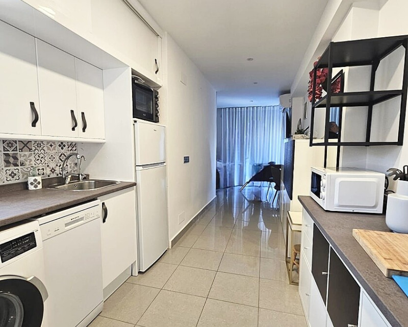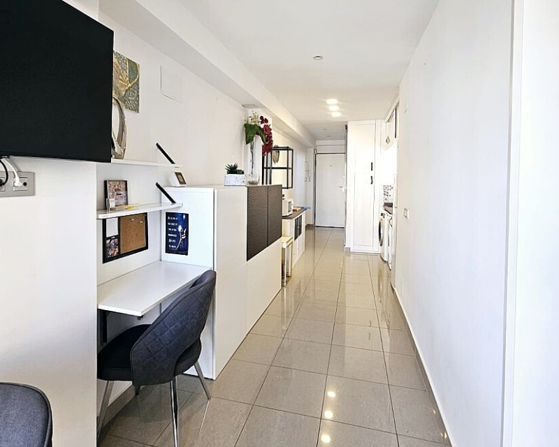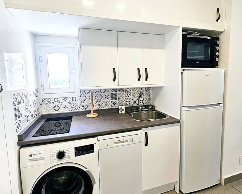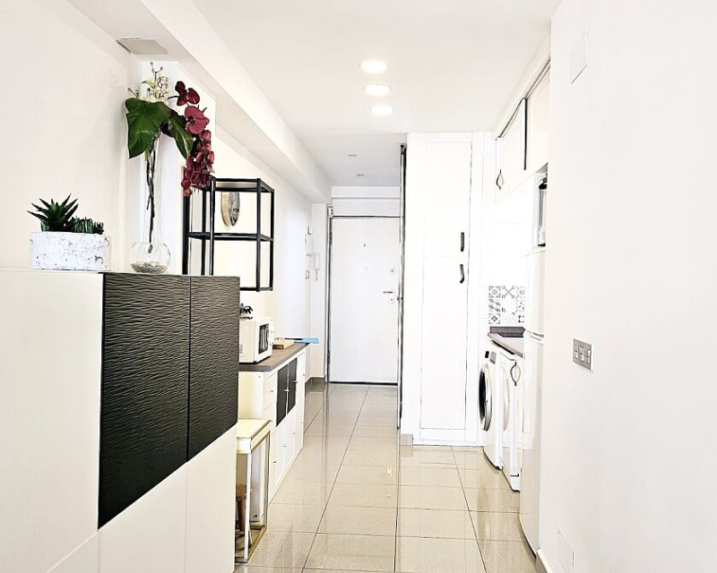 1 bedroom apartment near the sea in Dehesa de Campoamor. One-bedroom apartment 700 meters from the sea in Dehesa de Campoamor. This bright 1-bedroom, 1-bathroom apartment has been recently renovated and is being sold fully furnished and equipped. It is a 10-minute walk from the beautiful coves and beaches of Campoamor. The home is located in a residential area with beautiful green areas, next to the sports center, with paddle tennis and tennis courts and a large swimming pool. Several golf courses and the La Zenia Boulevard shopping center are a 10-minute drive away. The city of Torrevieja is a 15-minute drive away.