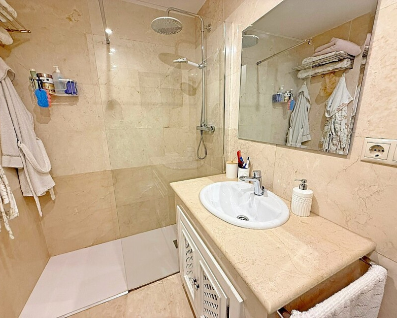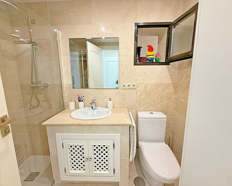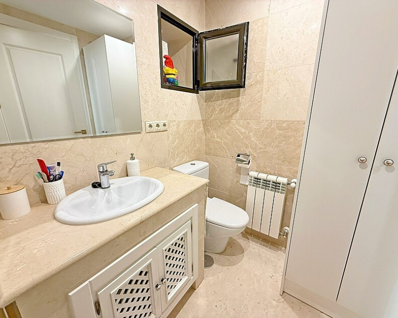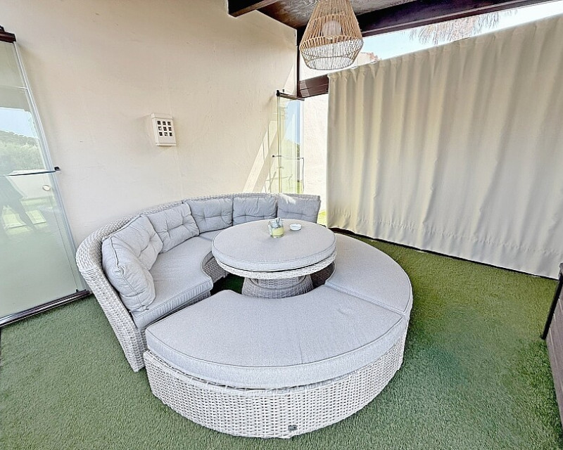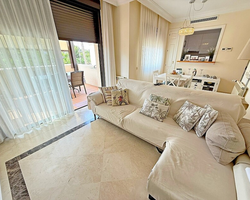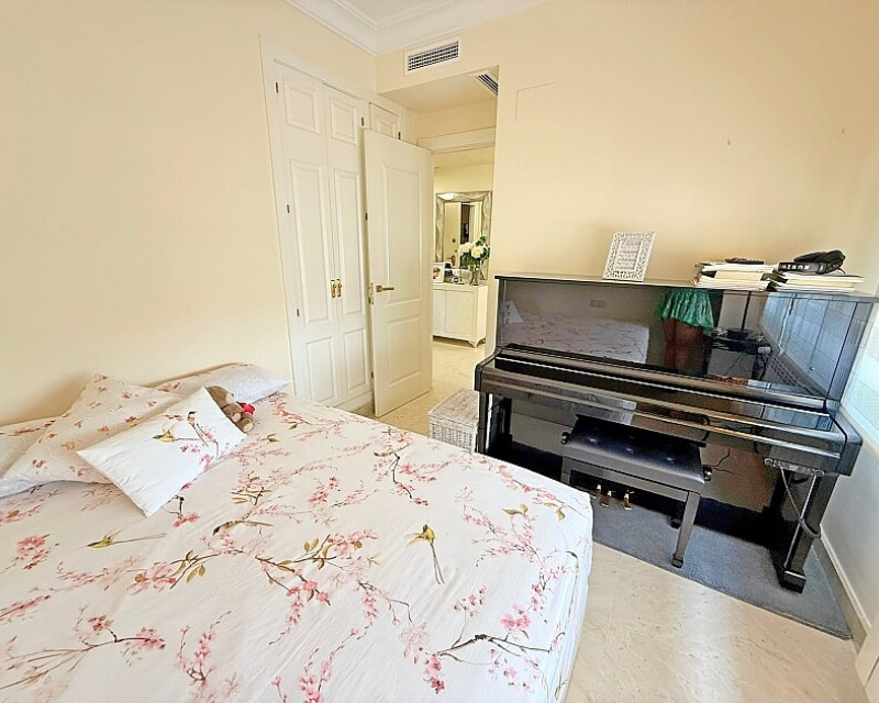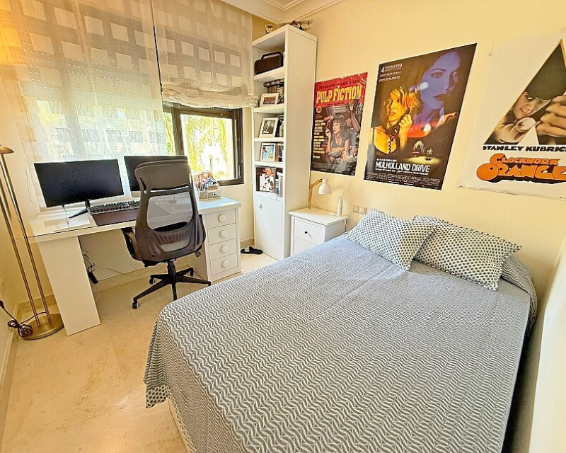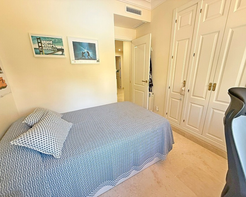 3 bedroom apartment on the golf course . Three-bedroom first-floor apartment with elevator, located in an exclusive private resort with 24/7 security and video surveillance. The property is sold furnished and equipped and includes a parking space and a storage room. The complex features an 18-hole golf course, communal pools with natural gardens, a social club, a gym, tennis courts, and a supermarket, all in a secure and carefully maintained environment.