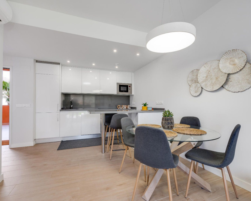 We present this magnificent ground floor property, ideal both as a permanent residence and as an investment for holiday rentals. The apartment has a built area of 106 m² and offers a functional and comfortable design, comprising two spacious bedrooms and two full bathrooms.The property stands out for its outdoor spaces: it features two terraces, a bright interior patio, and a spectacular private garden of 79 m², perfect for enjoying outdoor moments with privacy and tranquility.Among its features, it includes air conditioning and heating, ensuring maximum comfort throughout the year. It is delivered fully furnished, with modern décor and ready to move in.The property is part of a residential complex with an elevator, communal swimming pool, and shared landscaped areas. Additionally, it includes an underground parking space in the price, adding great value and convenience.In summary, a very complete and well-equipped home located in a residential area that combines tranquility with good connections. Ideal for those seeking quality of life and outdoor spaces without giving up modern amenities.