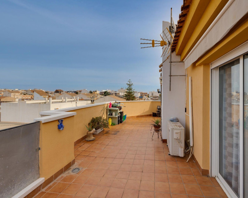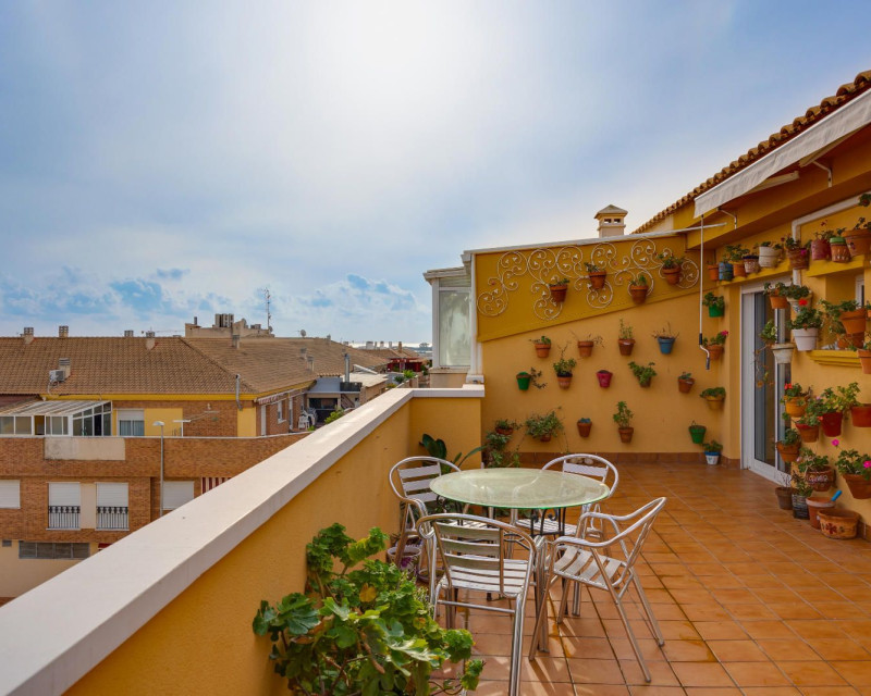 Penthouse with Sea Views in Pilar de la Horadada – 3 Bedrooms, Large Terrace & Excellent ConditionUnique opportunity! Beautiful penthouse for sale in Pilar de la Horadada, just a few minutes from the sea, located in a quiet residential area with all services nearby. Bright and well-laid-out apartment, ideal as a permanent residence or holiday home on the Mediterranean coast.Main features:3 bedrooms with built-in wardrobes1 full bathroomSpacious living-dining room with direct access to the terraceFully equipped kitchen, open-plan or separatePrivate terrace with unobstructed sea viewsPrivate solarium or rooftop terrace (depending on the model)South/Southeast orientation – very sunny2 parking spaces includedStorage roomProperty condition:In excellent conditionHigh-quality materials: Climalit windows, ceramic or laminate flooring, lacquered doorsDucted air conditioning (installed or pre-installed)Move-in ready – no renovations neededLocation:Peaceful residential area close to shops, schools, medical services, and beaches. Easy access to the N-332 and AP-7. Just minutes from Torre de la Horadada and the marina.???? Contact us today to schedule a viewing – this is a must-see!
