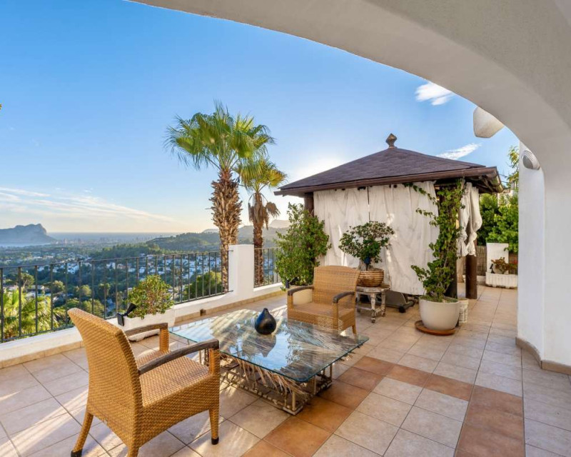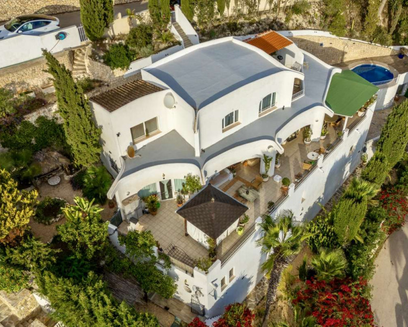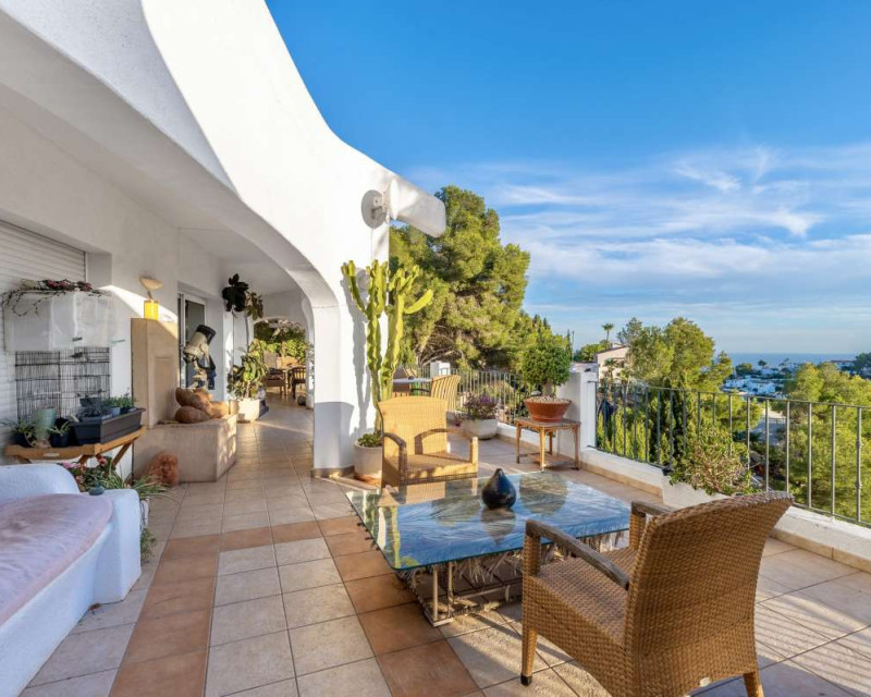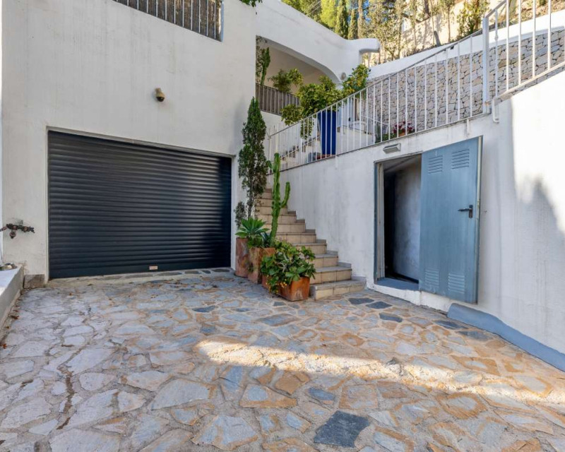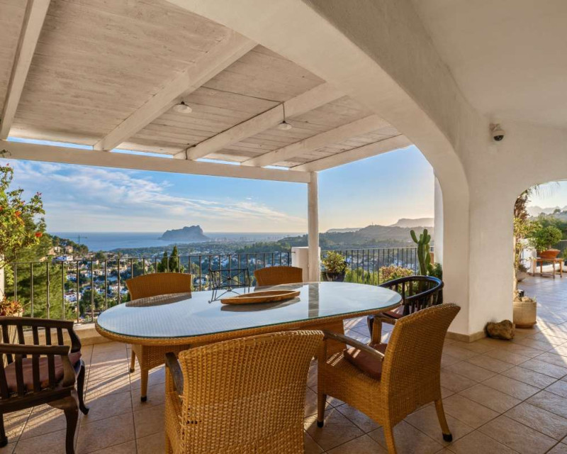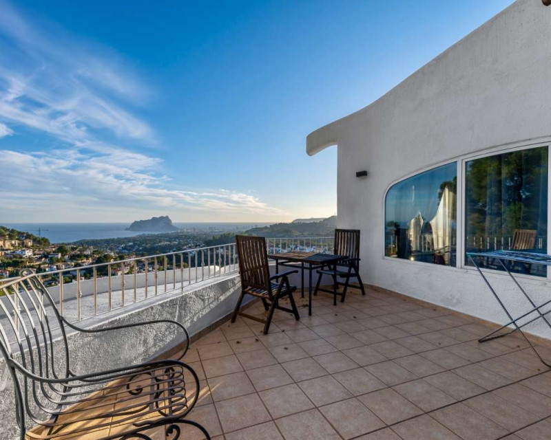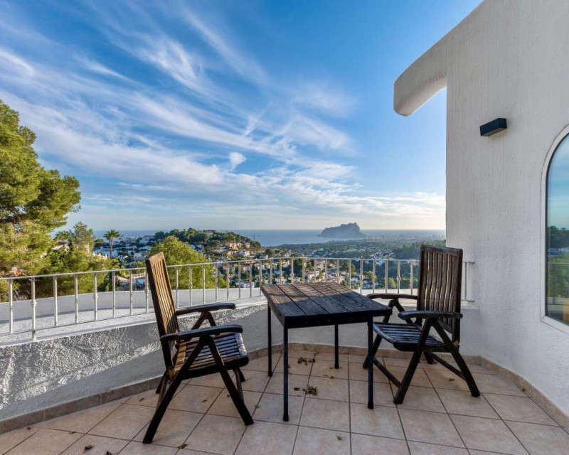 Nestled in one of the most peaceful and sought-after residential areas of Benissa, this charming Mediterranean villa offers breathtaking views of the sea and the iconic Peñón de Ifach. Located within a short drive of sandy beaches, restaurants, supermarkets, and the vibrant town of Calpe, the property combines comfort, privacy, and exceptional surroundings.Built in 2000, the house is distributed across three completely independent floors, each with its own private entrance—ideal for large families, hosting guests, or generating rental income.First FloorThe first level features a bright studio-style kitchen with direct access to a cozy terrace—perfect for morning coffee with a sea breeze. This floor also includes two bedrooms with a shared bathroom. Both bedrooms offer beautiful views of the sea and the Peñón, creating a serene and relaxing atmosphere.Second FloorThe second floor boasts a spacious terrace overlooking Calpe and the shimmering Mediterranean Sea. Inside, you will find a generous living room, a fully equipped kitchen, three bedrooms, and two bathrooms. This level is perfect as the main living area of the home, offering comfort and space for everyday life.Third FloorThe top floor offers a charming small garden, a studio-style kitchen, a bathroom, and two additional bedrooms. This level provides complete privacy and independence, making it ideal for guests or extended family.Additional FeaturesPrivate garageOutdoor parking spaceSwimming poolIndependent entrances on each floorPeaceful and private locationThis property is a wonderful opportunity for those seeking a versatile home with stunning views, generous outdoor spaces, and an unbeatable location near the coast.