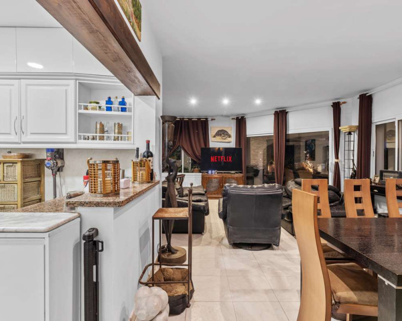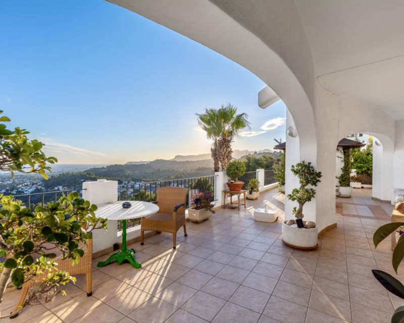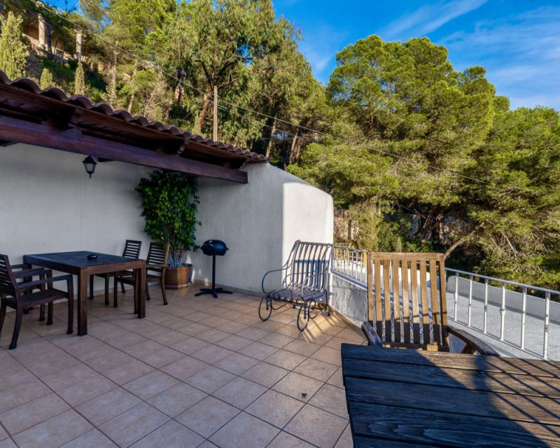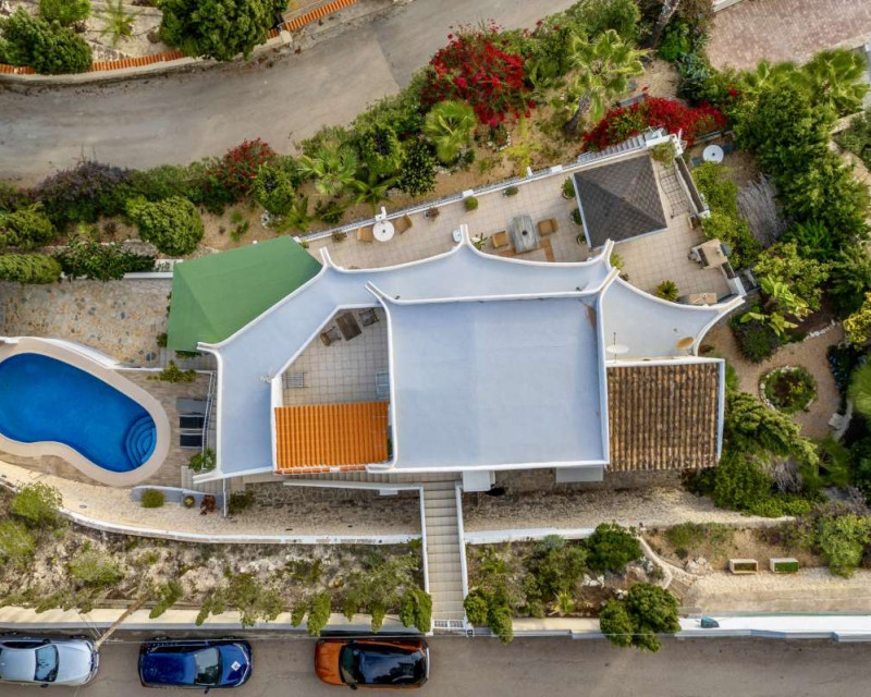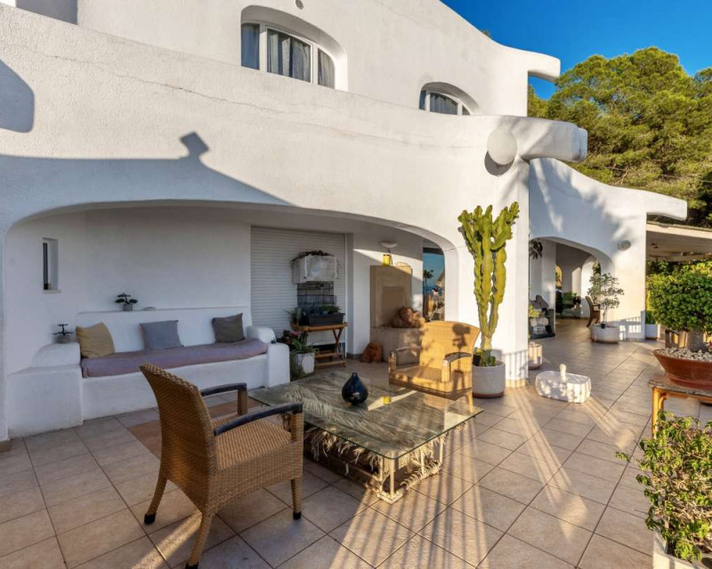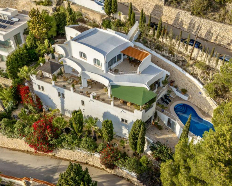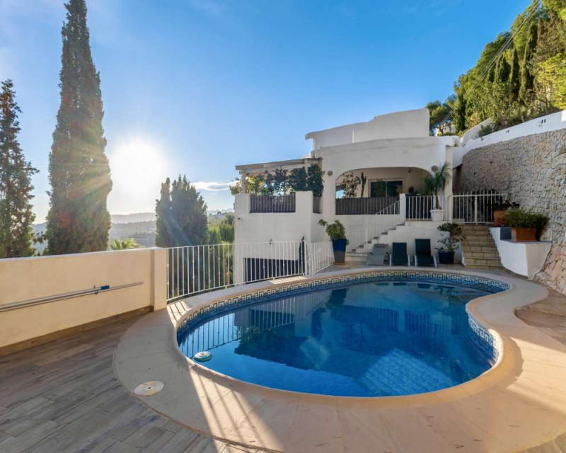 Nestled in one of the most peaceful and sought-after residential areas of Benissa, this charming Mediterranean villa offers breathtaking views of the sea and the iconic Peñón de Ifach. Located within a short drive of sandy beaches, restaurants, supermarkets, and the vibrant town of Calpe, the property combines comfort, privacy, and exceptional surroundings.Built in 2000, the house is distributed across three completely independent floors, each with its own private entrance—ideal for large families, hosting guests, or generating rental income.First FloorThe first level features a bright studio-style kitchen with direct access to a cozy terrace—perfect for morning coffee with a sea breeze. This floor also includes two bedrooms with a shared bathroom. Both bedrooms offer beautiful views of the sea and the Peñón, creating a serene and relaxing atmosphere.Second FloorThe second floor boasts a spacious terrace overlooking Calpe and the shimmering Mediterranean Sea. Inside, you will find a generous living room, a fully equipped kitchen, three bedrooms, and two bathrooms. This level is perfect as the main living area of the home, offering comfort and space for everyday life.Third FloorThe top floor offers a charming small garden, a studio-style kitchen, a bathroom, and two additional bedrooms. This level provides complete privacy and independence, making it ideal for guests or extended family.Additional FeaturesPrivate garageOutdoor parking spaceSwimming poolIndependent entrances on each floorPeaceful and private locationThis property is a wonderful opportunity for those seeking a versatile home with stunning views, generous outdoor spaces, and an unbeatable location near the coast.