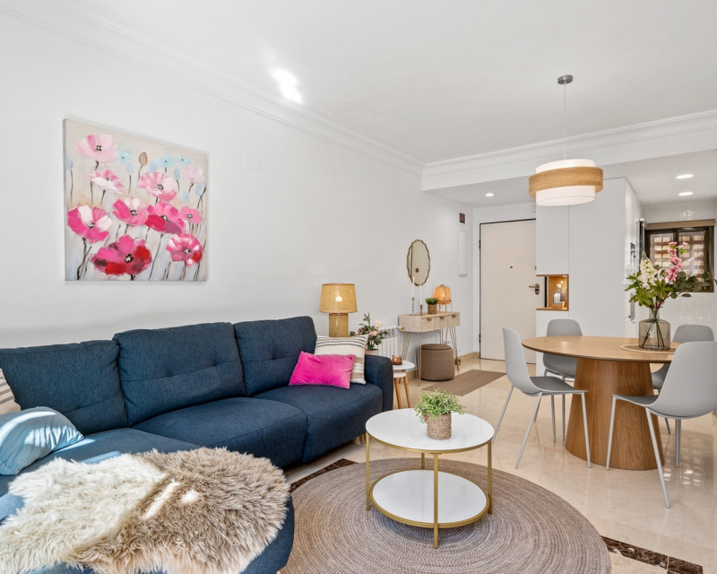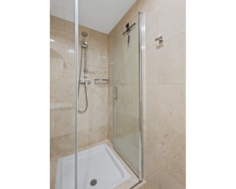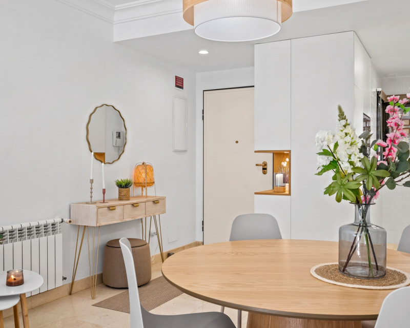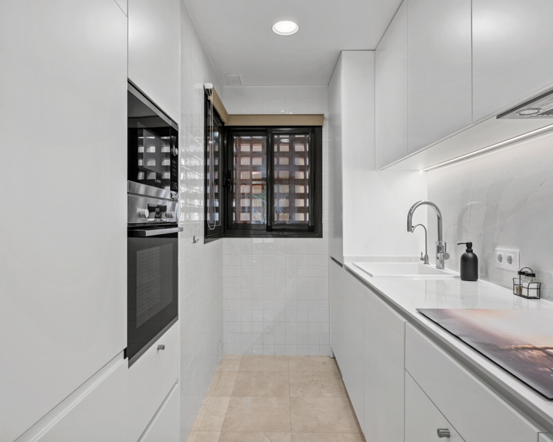 This stylish property is completely ready for immediate use. Thanks to its favorable south-facing orientation, you can enjoy sunshine on the terrace all day long, well into the evening, with beautiful views of the landscaped surroundings. A staircase on the terrace leads to the spacious private rooftop terrace, where you can enjoy stunning panoramic views. The apartment features two comfortable bedrooms and two modern bathrooms, one of which is en-suite with a walk-in shower. The property is offered fully furnished and ready to move in. The open kitchen has been recently completely renovated and is equipped with high-quality Bosch appliances. The entire home has been tastefully finished with great attention to detail and high-quality materials. Additional comfort is provided by the presence of an elevator, a private parking space in the underground secure garage, as well as a spacious storage room. Roda Golf & Beach Resort is a gated and secure community with 24/7 security, where peace, safety, and comfort are key. Phase 1 includes five swimming pools, beautifully maintained gardens, and a शानदार 18-hole golf course. The charming clubhouse, within walking distance, forms the vibrant heart of the resort. The location is ideal: just 500 meters from the authentic village of Roda with a small supermarket, cozy restaurants, and a hairdresser. Larger supermarkets are located 1.5 km away, and the extensive beaches of Los Alcázares are just 3 km away.