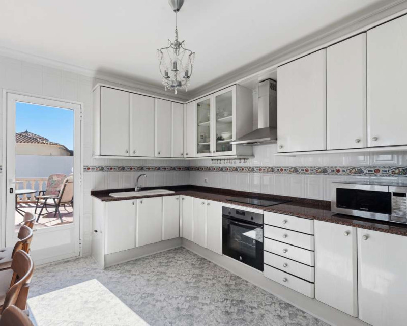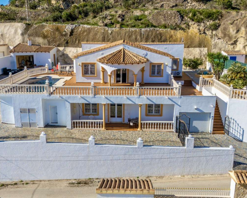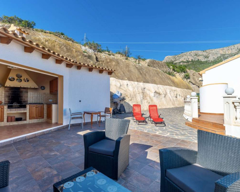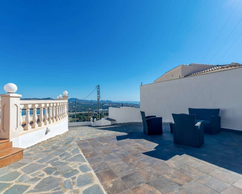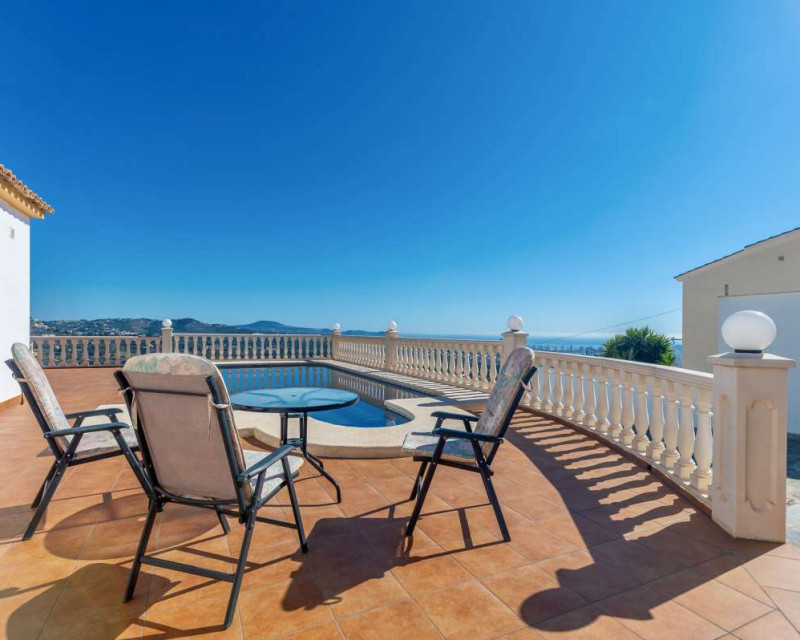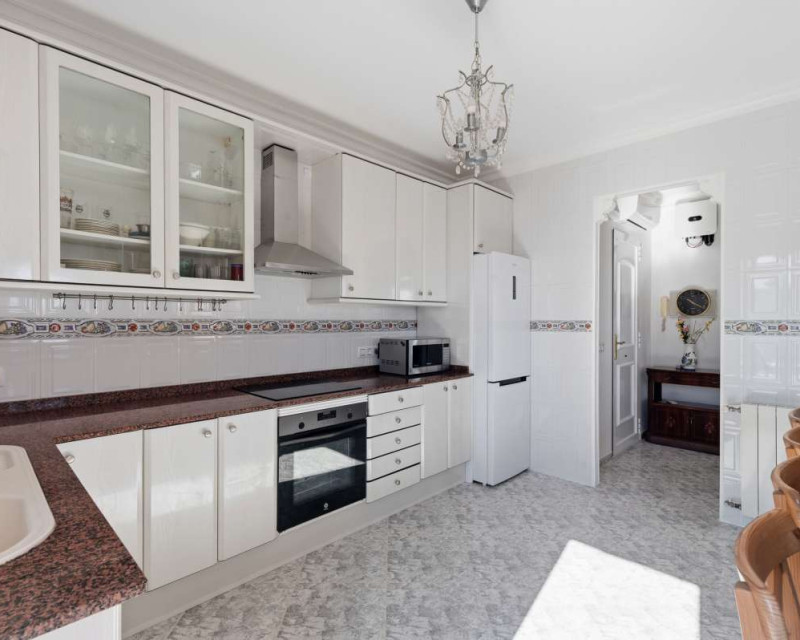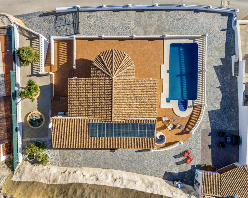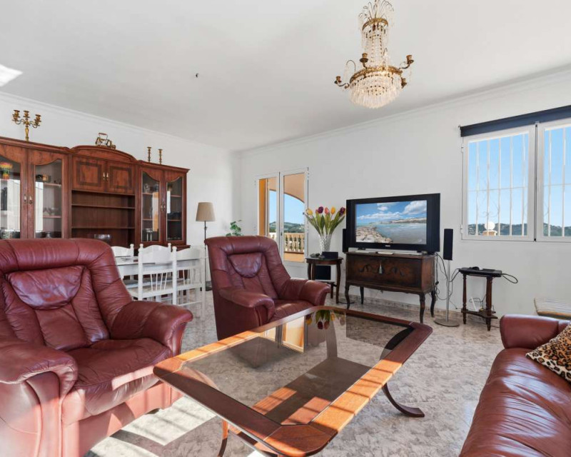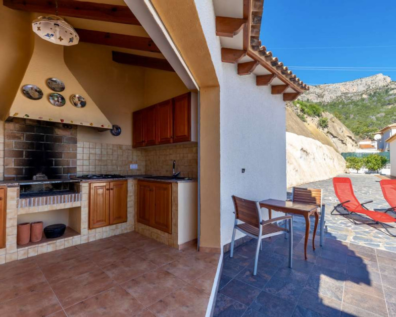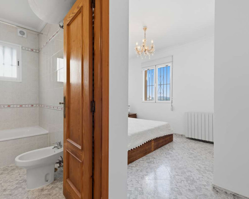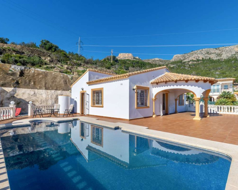 Built in 2004 on a 799 m² plot, this 248 m² villa is located in a peaceful elevated residential area of Calpe, where the Mediterranean Sea, the mountains, the iconic Peñón de Ifach and the town unfold in front of you like a living postcard. By day you wake up to endless blue; by night you enjoy the magic of Calpe’s sparkling lights below.The property is distributed over two independent floors, making it ideal for permanent living, hosting guests, or combining private use with rental potential.On the first floor, an entrance hall leads to two spacious bedrooms, each with its own en-suite bathroom, creating a private and comfortable retreat for family members or visitors.The second floor opens into a bright open-plan kitchen connected seamlessly to the living room, forming the heart of the home — a space filled with light and views. This level also includes one additional bedroom, a separate bathroom, and a master bedroom with its own en-suite. Every window frames the sea, the mountains and the Peñón, turning daily life into something quietly extraordinary.Outside, Mediterranean living takes center stage with a private swimming pool, a summer kitchen perfect for sunset dinners, a low-maintenance garden and a private garage. The house is equipped with solar panels, a water boiler and a gas heating system, ensuring comfort and efficiency throughout the year.The location offers privacy without isolation. The town centre is approximately 5–7 minutes by car, beaches around 7–10 minutes, restaurants and bars within 5–8 minutes, the nautical club and marina about 10 minutes, golf courses approximately 15–20 minutes, and international schools around 15–25 minutes away.This villa is perfectly suited both as a permanent residence — thanks to its space, heating system and practical layout — and as a holiday home where every stay feels elevated above the ordinary.It is not just a property with views. It is a home that lives with the sky and the sea.