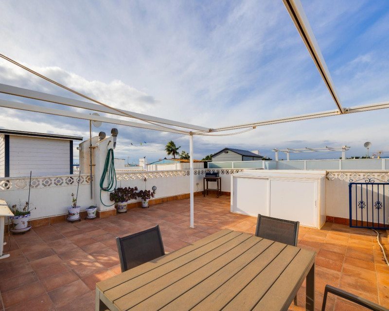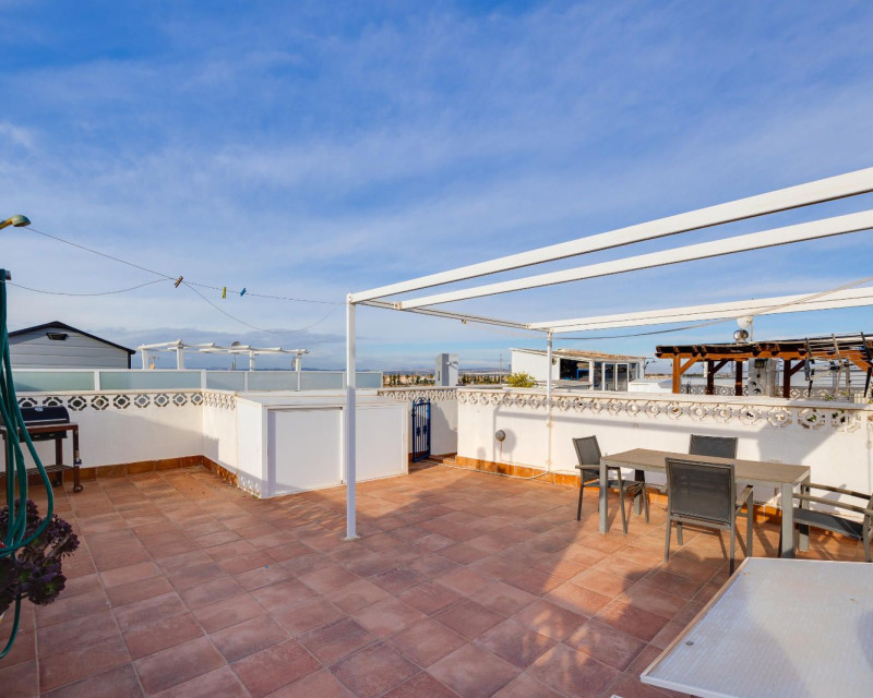 Charming top-floor apartment located in Jardín del Mar, near Carrefour and the Habaneras Shopping Centre, one of Torrevieja's most sought-after areas thanks to its tranquility and excellent access to all amenities. The property features three bedrooms, a bright living-dining room, a fully equipped kitchen, a bathroom, and a terrace perfect for everyday living. Its main attraction is the spacious private solarium, a versatile space where you can soak up the sun year-round, create a pleasant chill-out area (with a barbecue or even a jacuzzi), perfect for relaxing in privacy or entertaining friends. Situated in a well-maintained residential area, close to supermarkets, parks, public transport, and just minutes from the town centre and beaches, this apartment offers comfort, a great location, and a truly exceptional outdoor space.