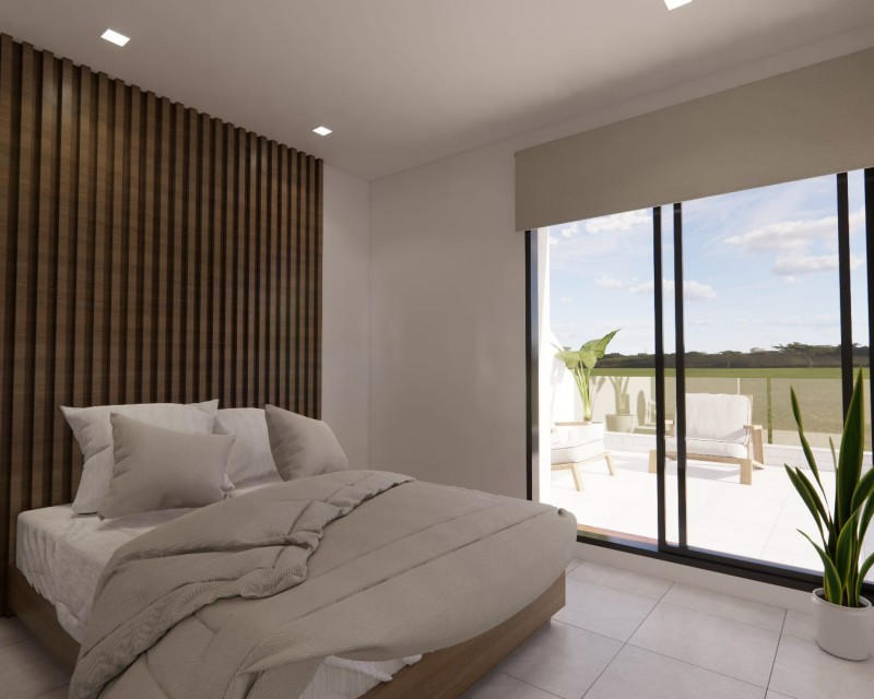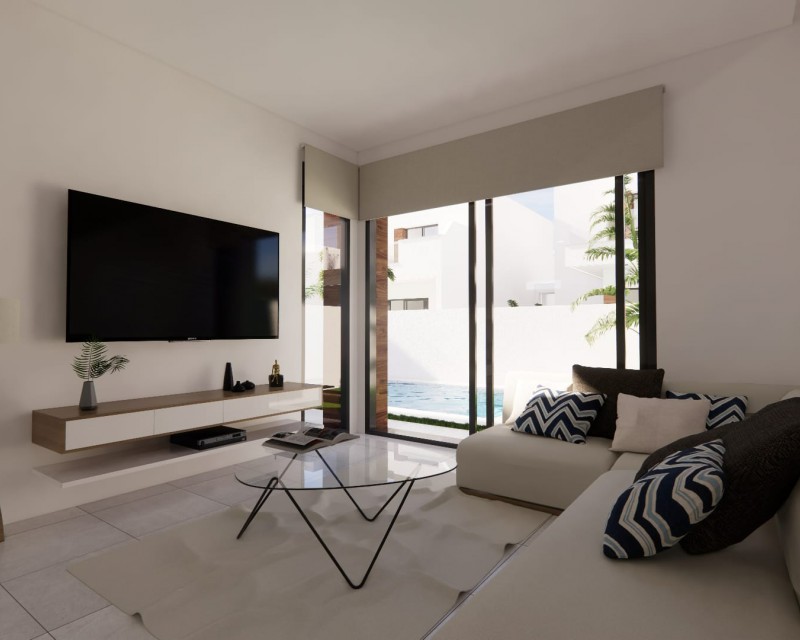 NYA KONSTRUKTIONSVILLOR I SAN FULGENCIO Nybyggda fristående villor belägna i staden San Fulgencio. Villor på 130 m2 byggda på tomter på 180 m2, med 3 sovrum, 2 kompletta badrum, 1 toalett, amerikanskt kök med vardagsrum/matsal, inbyggda garderober, terrasser, privat solarium, trädgård med privat pool och parkeringsplats. Det ligger 300 meter från centrum med all service, affärer, restauranger, rådhus, bank. Staden San Fulgencio ligger cirka 30 minuter från Alicante-Elche flygplats, 6 km från närmaste golfbana och bara 7 km från närmaste strand. LEVERANS MARS 2023.